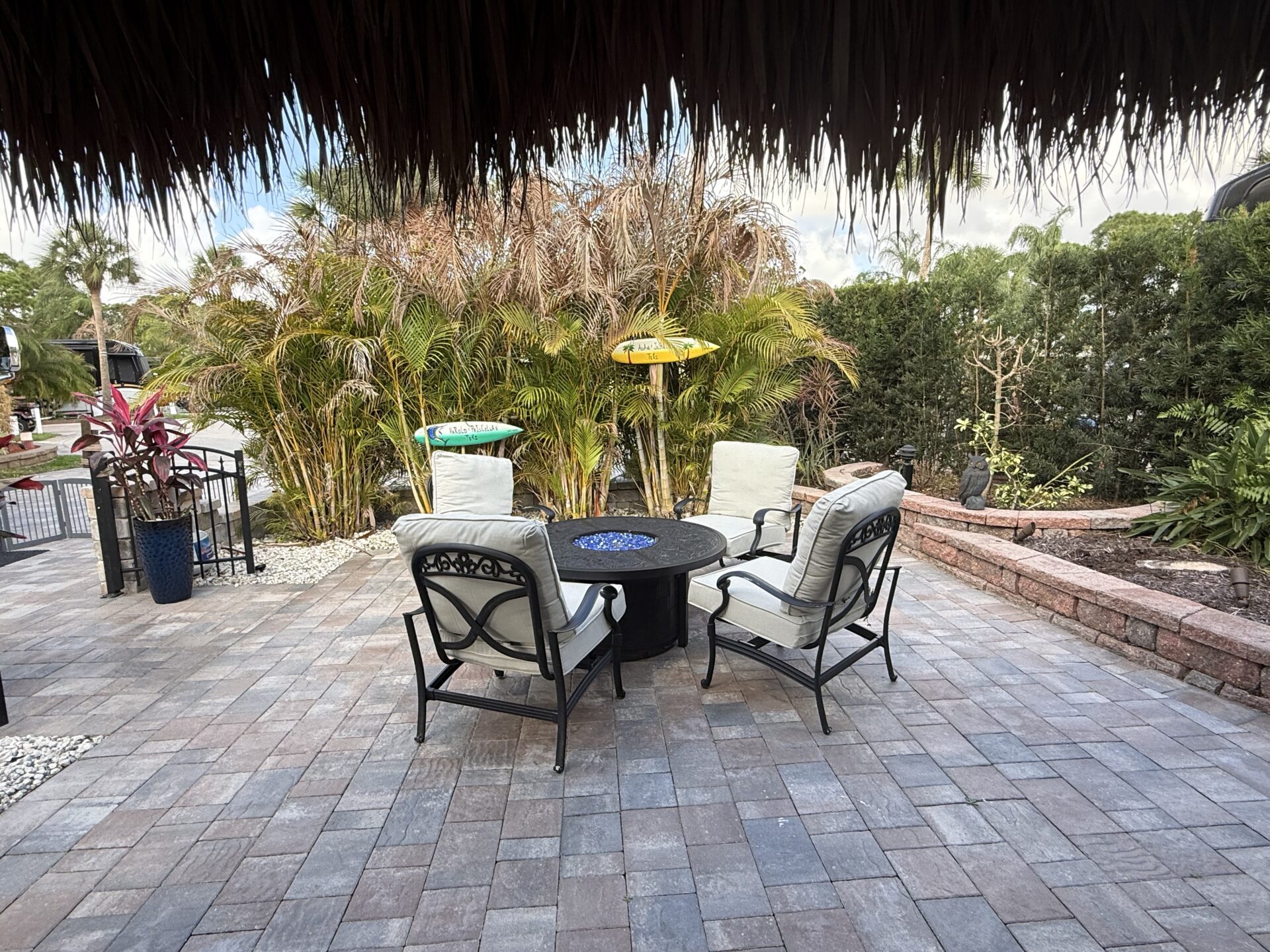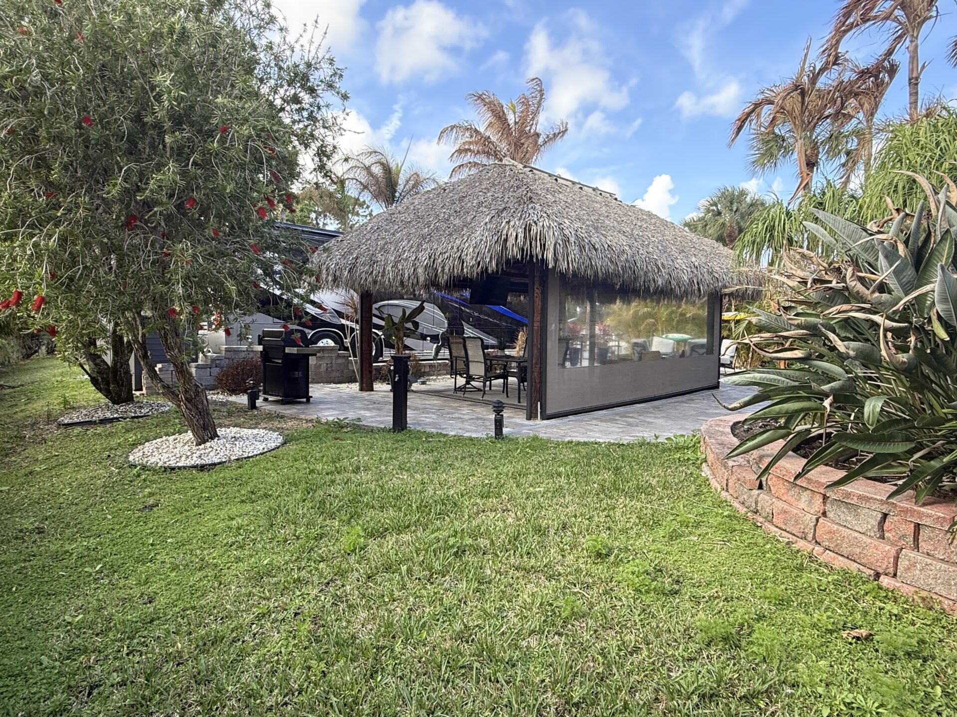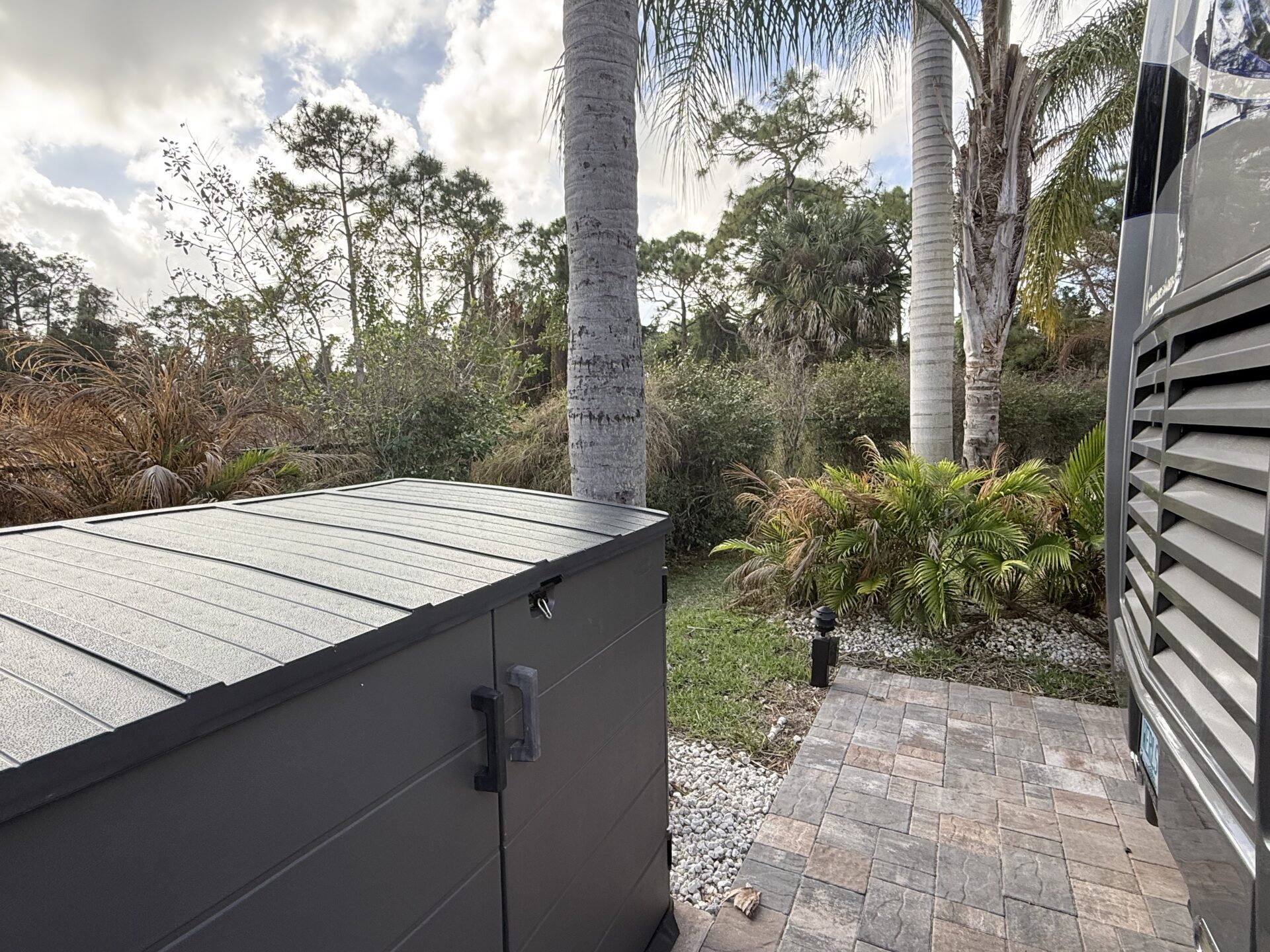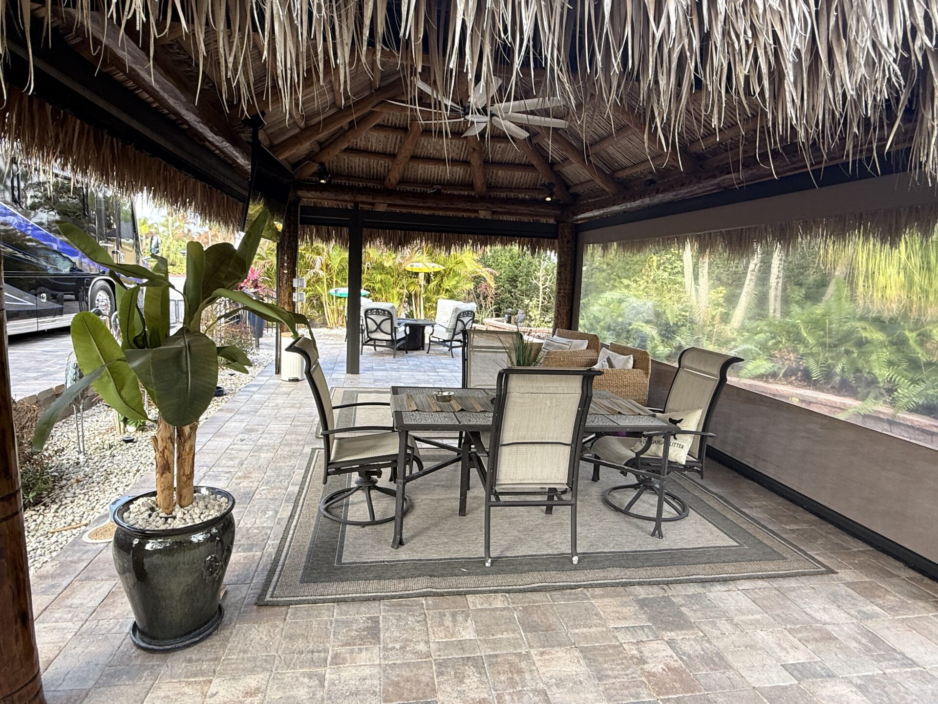 Owner financing available for this beautiful lot, nestled on a private corner location directly across from the North Satellite Pool, this desirable north-facing lot is a true nature lover’s retreat. Surrounded by mature landscaping, the property offers exceptional privacy and shade, creating a tranquil outdoor setting rarely found in the resort. The expansive backyard provides room for entertaining, or simply enjoying a generous outdoor living area. A large tiki hut features motorized Eisenglass shades for year-round comfort. Recent upgrades include new-style pavers over entire lot. There’s ample parking for up to three vehicles and additional guest parking conveniently located across the street near the satellite pool and spa, bathhouses, and laundry facilities. The corner setting allows for easy access and stress-free backing in. Fully furnished and move-in ready, this beautifully maintained property combines privacy, functionality, and resort-style living.