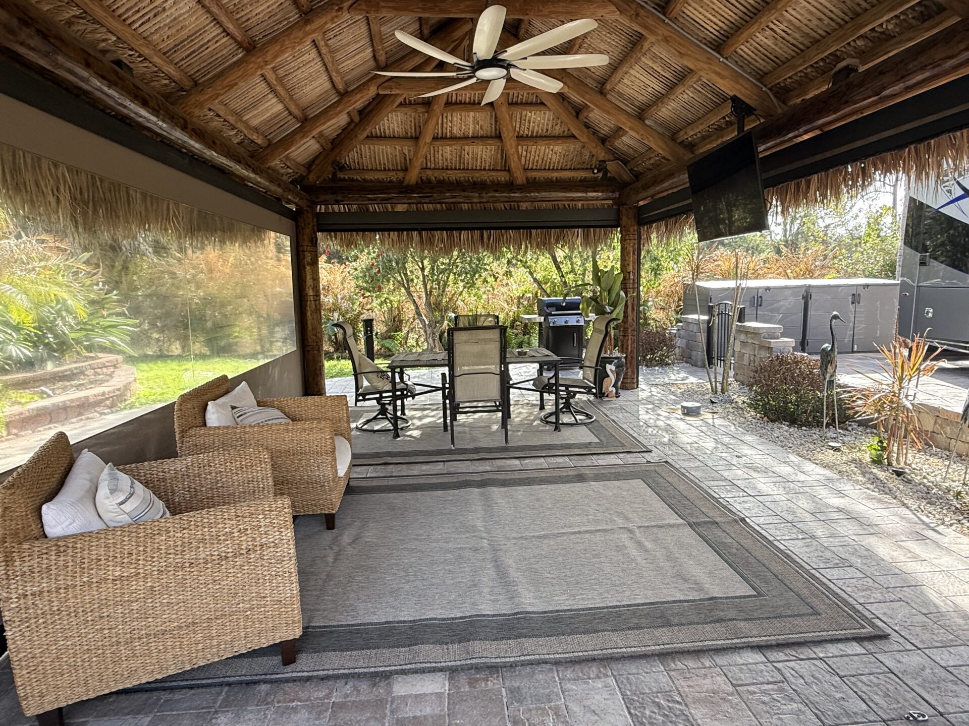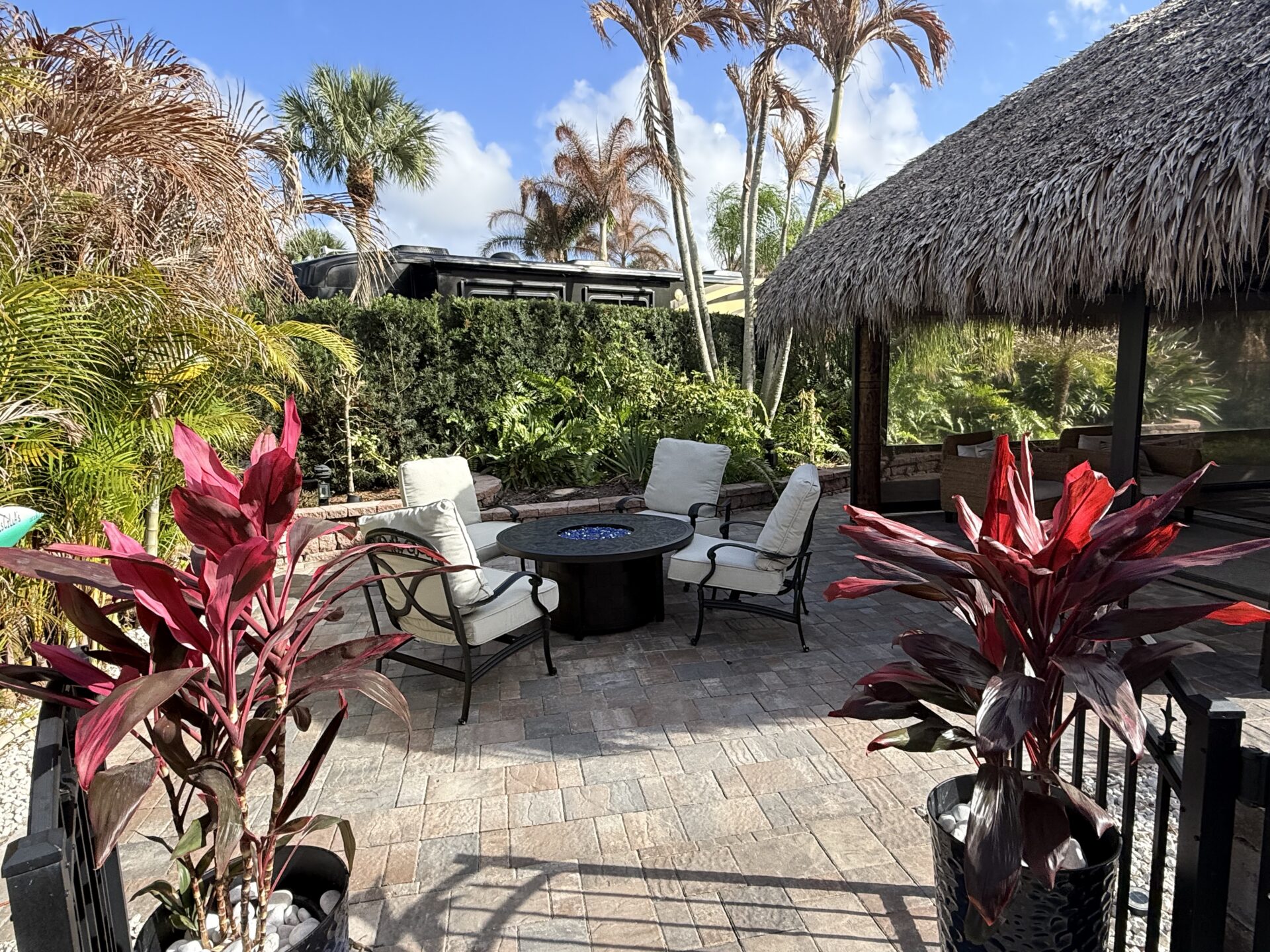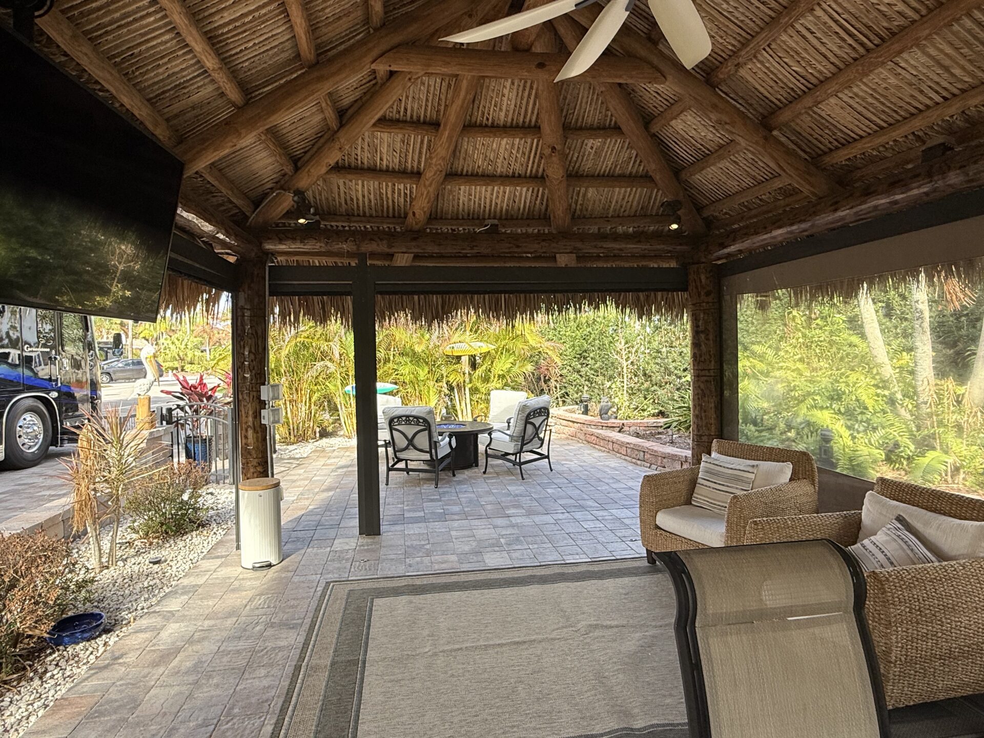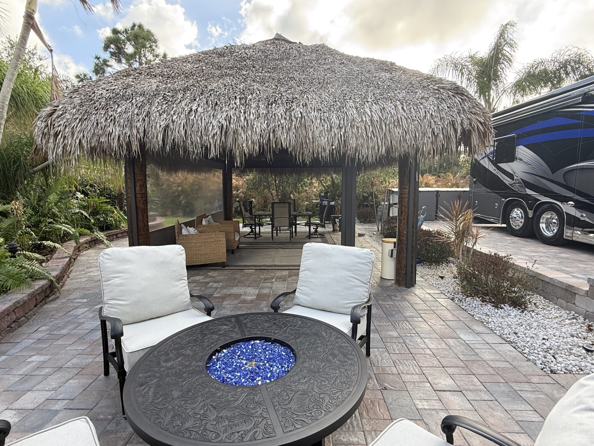 Owner financing available for this beautiful lot, nestled on a private corner location directly across from the North Satellite Pool, this desirable north-facing lot is a true nature lover’s retreat. Surrounded by mature landscaping, the property offers exceptional privacy and shade, creating a tranquil outdoor setting rarely found in the resort. The expansive backyard provides room for entertaining, or simply enjoying a generous outdoor living area. A large tiki hut features motorized Eisenglass shades for year-round comfort. Recent upgrades include new-style pavers over entire lot. There’s ample parking for up to three vehicles and additional guest parking conveniently located across the street near the satellite pool and spa, bathhouses, and laundry facilities. The corner setting allows for easy access and stress-free backing in. Fully furnished and move-in ready, this beautifully maintained property combines privacy, functionality, and resort-style living.