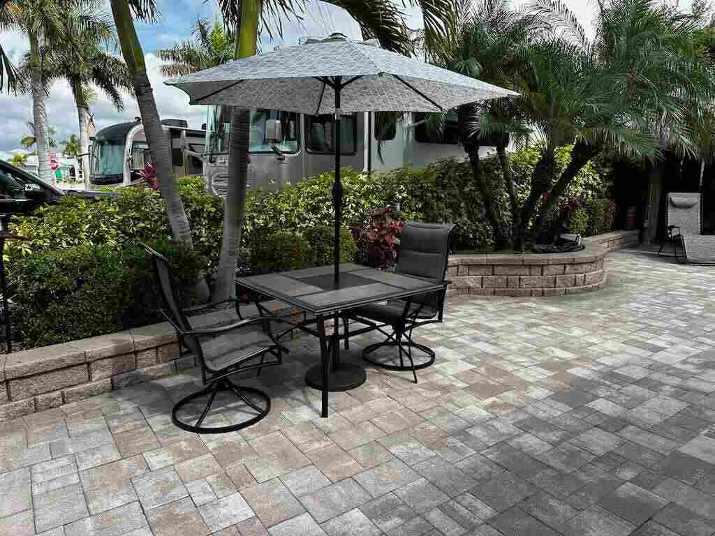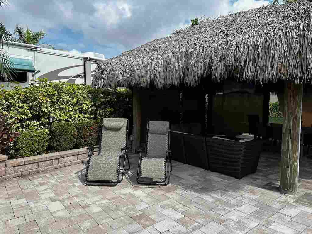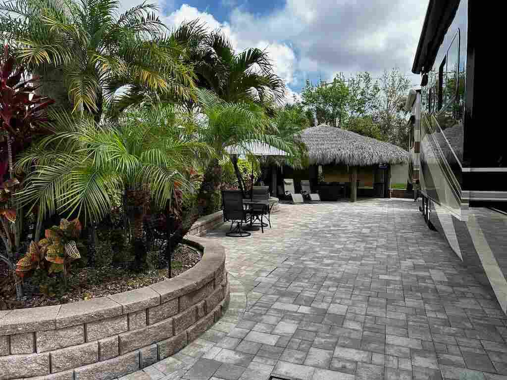 Discover the epitome of luxury living with this conveniently located, expansive lot—a true gem nestled within the coveted Motorcoach Resort. Boasting proximity to the back exit gate and the newly installed pool/spa, bathhouse, and dog washing station, convenience and comfort are at your fingertips. Prepare to be captivated by the sheer grandeur of this large, fully pavered oasis—a definite must-see for discerning buyers. Immaculate landscaping, featuring raised paver beds, adds a touch of elegance while ensuring privacy and tranquility. Entertainment and relaxation abound with not one, but two charming tikis adorning the property. One tiki, adorned with decoratively carved poles, houses a conveniently located kitchen, while the other is thoughtfully designed for hosting and unwinding in style. Step into your own private sanctuary, fully furnished, creating the perfect setting for relaxation and enjoyment. Don’t miss out on the opportunity to experience the ultimate in luxury living.