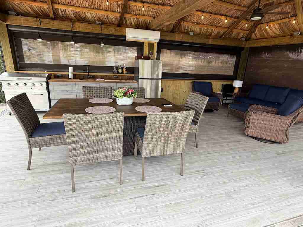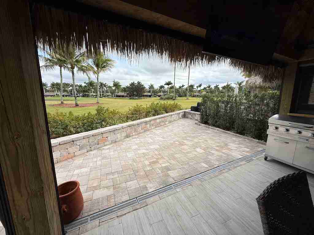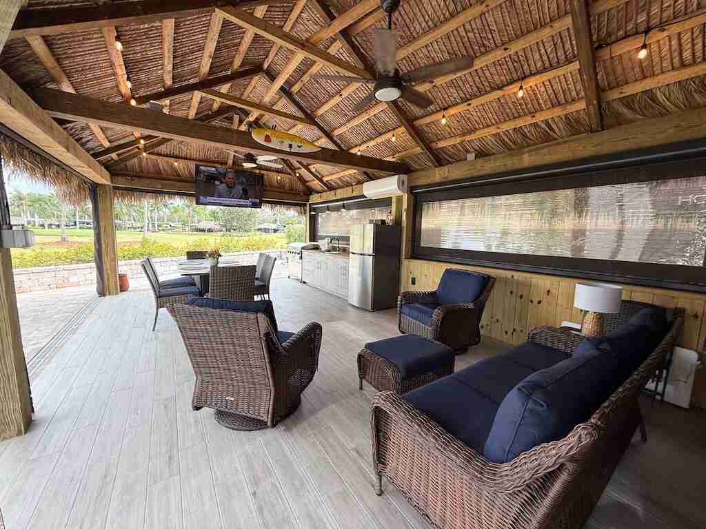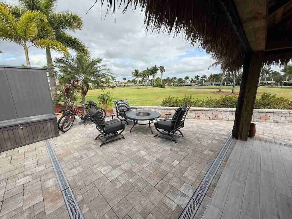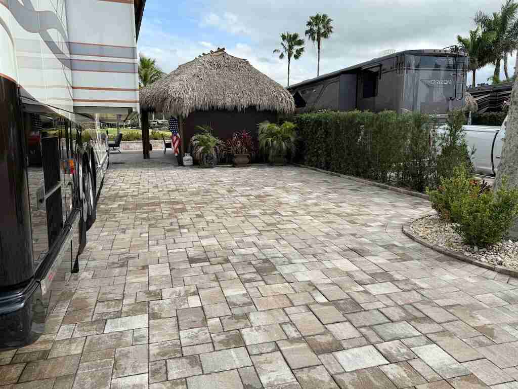 Spectacular Buildout – A True Hidden Gem! At first glance, this pull-in lot may seem like a standard tiki, but step inside, and you’ll discover a beautifully crafted post-and-beam pavilion, featuring stained structural beams that add a touch of rustic elegance. The enclosed tiki offers the perfect balance of privacy and comfort, with a combination of eisenglass and motorized screens for year-round enjoyment. Inside, a well-appointed built-in kitchen, tile flooring, and a partial wall create a warm, inviting atmosphere that feels like home. Positioned facing the golf course, this lot provides breathtaking views while maintaining privacy with a spacious, fully pavered patio—ideal for relaxing or entertaining. Move-in ready and thoughtfully designed, this one-of-a-kind lot has everything you need to start enjoying the luxury RV lifestyle today!