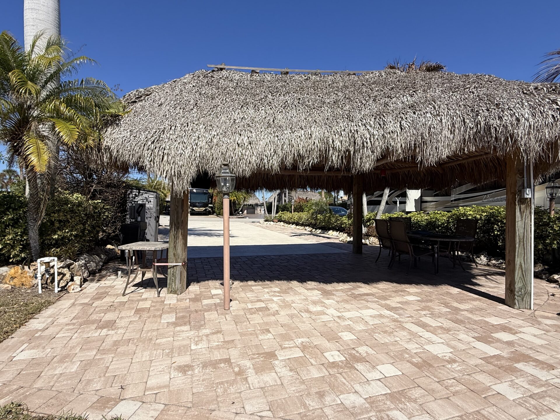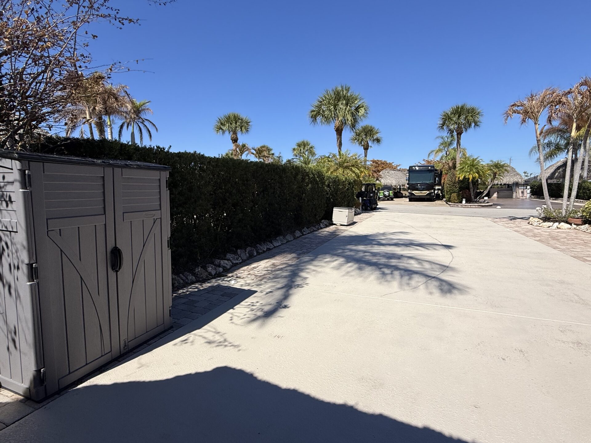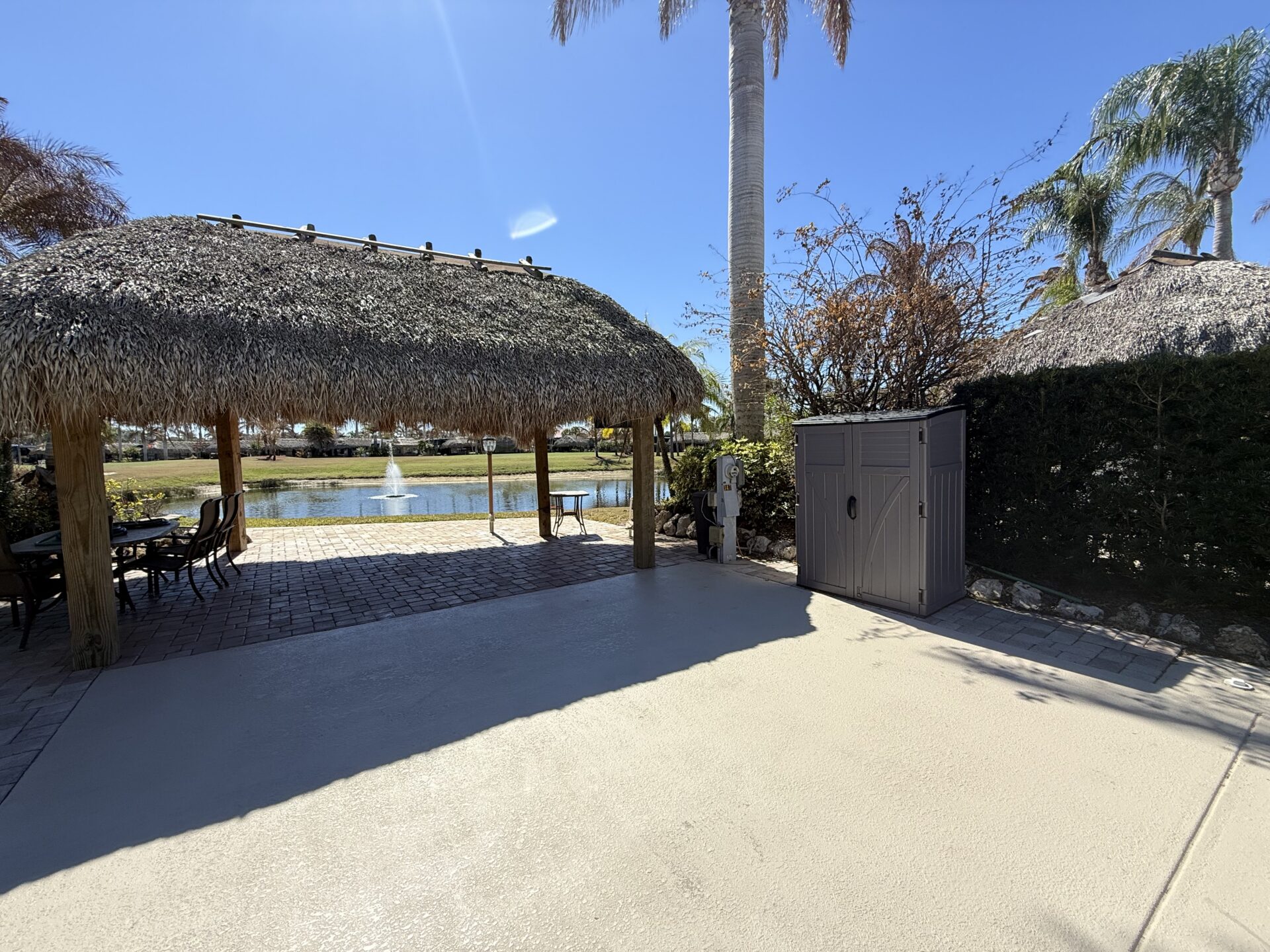 Nestled within an exclusive gated RV resort, this exceptional north-facing lot offers the perfect blend of privacy, tranquility, and upscale outdoor living. A spacious paver patio extends across the rear of the property, creating an inviting setting for relaxing or entertaining beneath a large, beautifully crafted tiki hut.