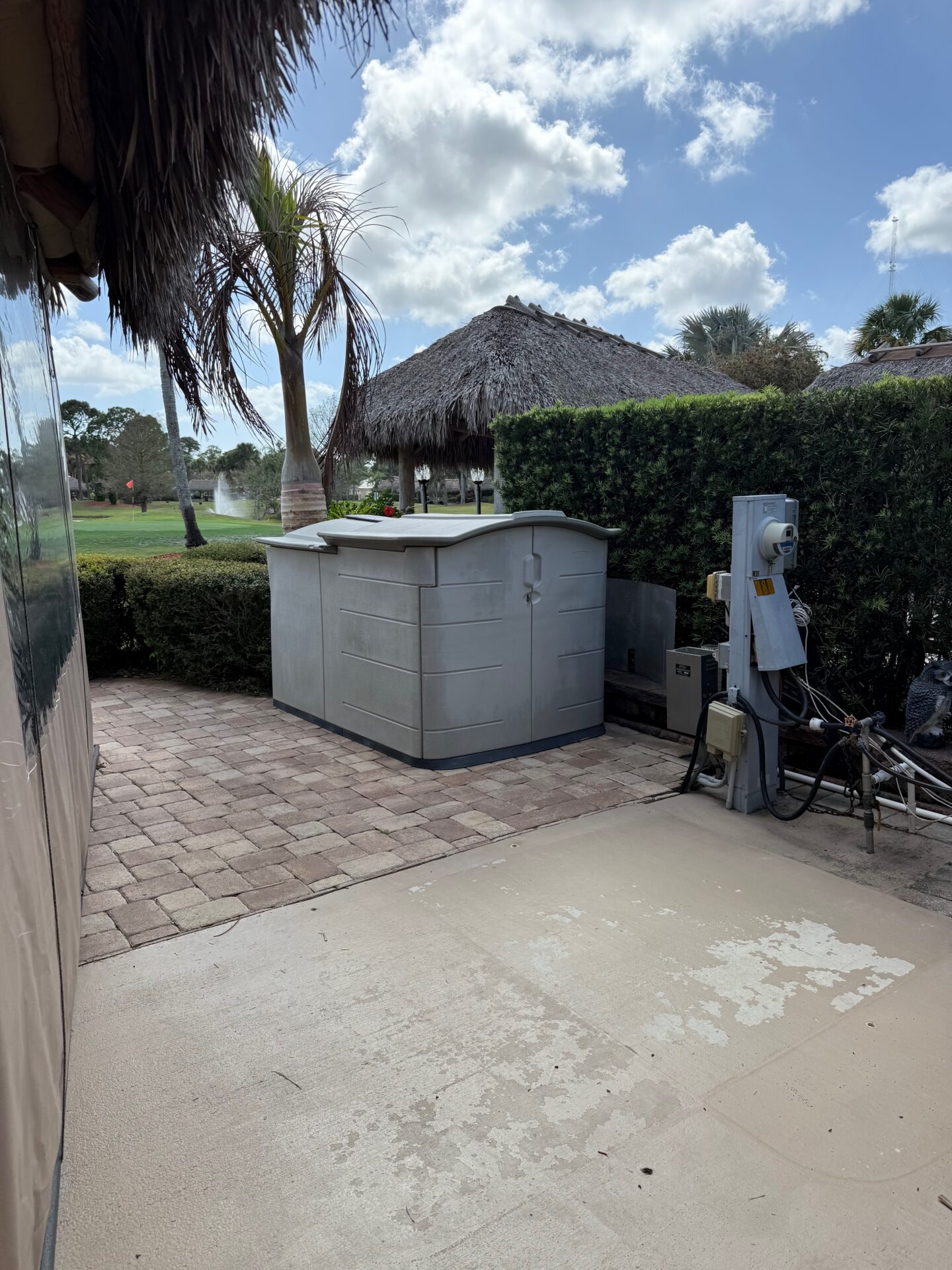 Beautiful lot looking out at the golf course. Enjoy this lot with a newly thatched tiki and shades. Perfect for entertaining or just lounging to read a great book. MCRSLW has plenty to offer with a very active community. Enjoy a game of golf, pickle ball, bocce, shuffleboard, tennis, billiards, darts. go to the gym or grab a book at the library.