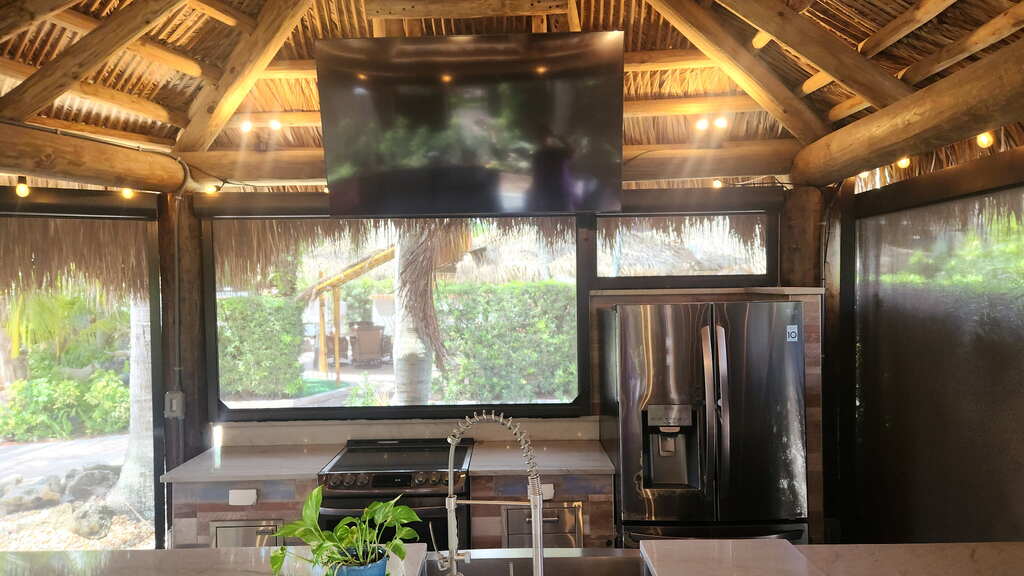 Beautiful corner pavered lot at the Motorcoach Resort of St Lucie West. Located on the golf course (14th hole) with a totally updated tiki with an amazing galley kitchen with granite counters and stainless steel appliances, Full size refrigerator, dishwasher, range, microwave, and grill. Large seating area with plenty of seating included. Tiki has electric shades, TV and lighting. Plenty of privacy. Easily park your 45’Class A only motorcoach with plenty of space for your vehicle, golf cart and more!
