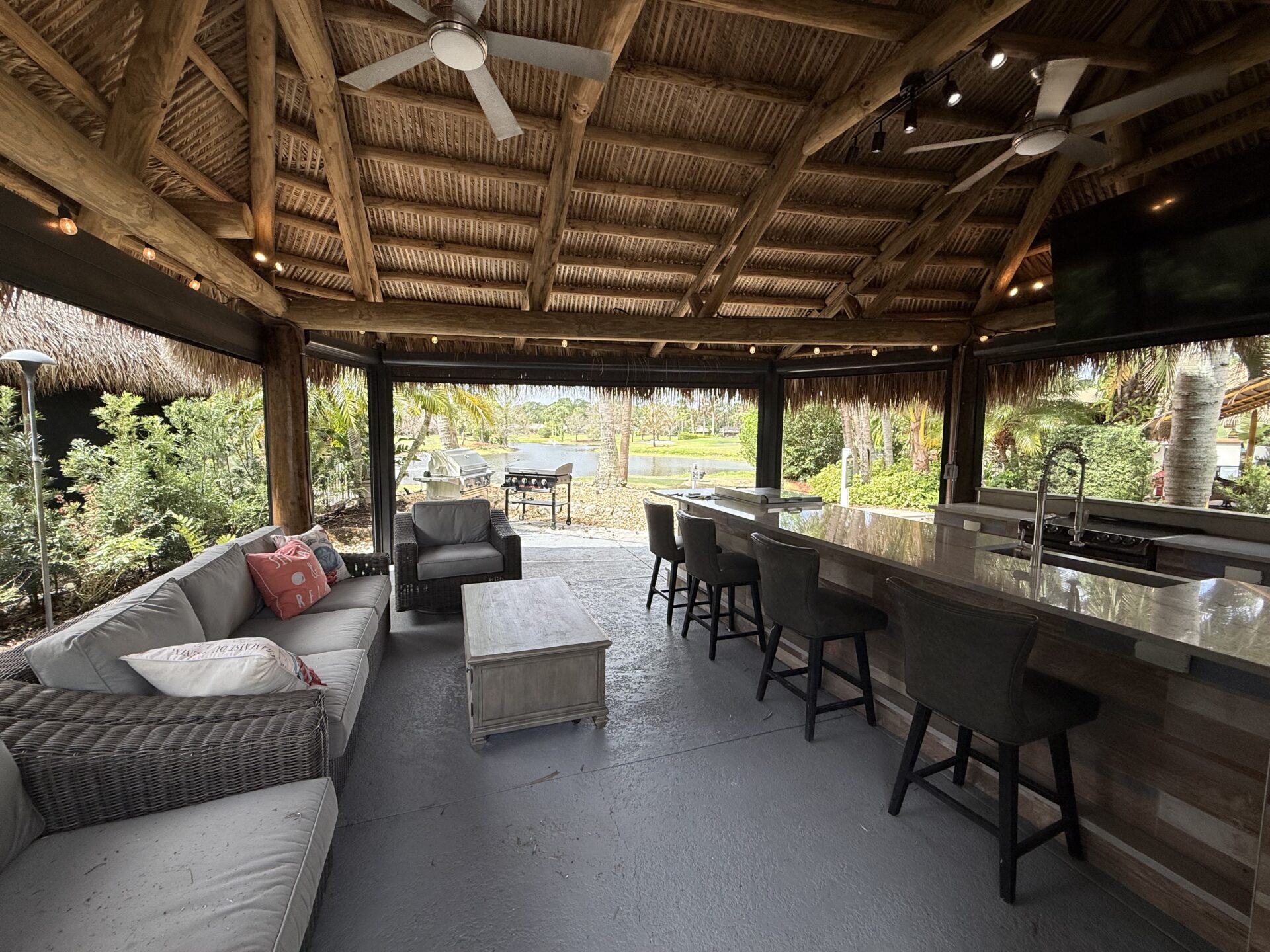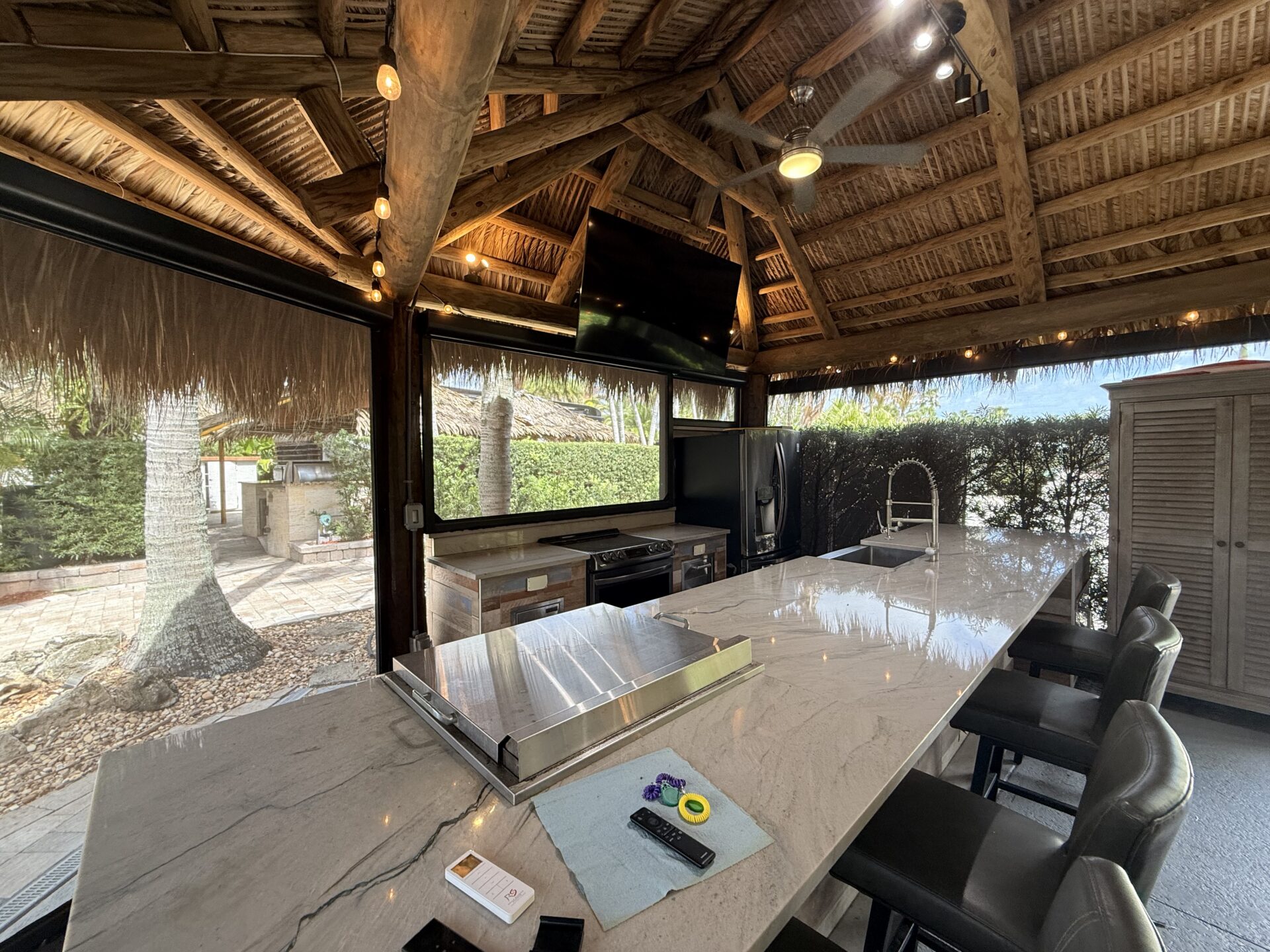 The thoughtfully designed galley-style kitchen and bar are fully equipped to accommodate everything from intimate evenings to larger-scale entertaining with ease.