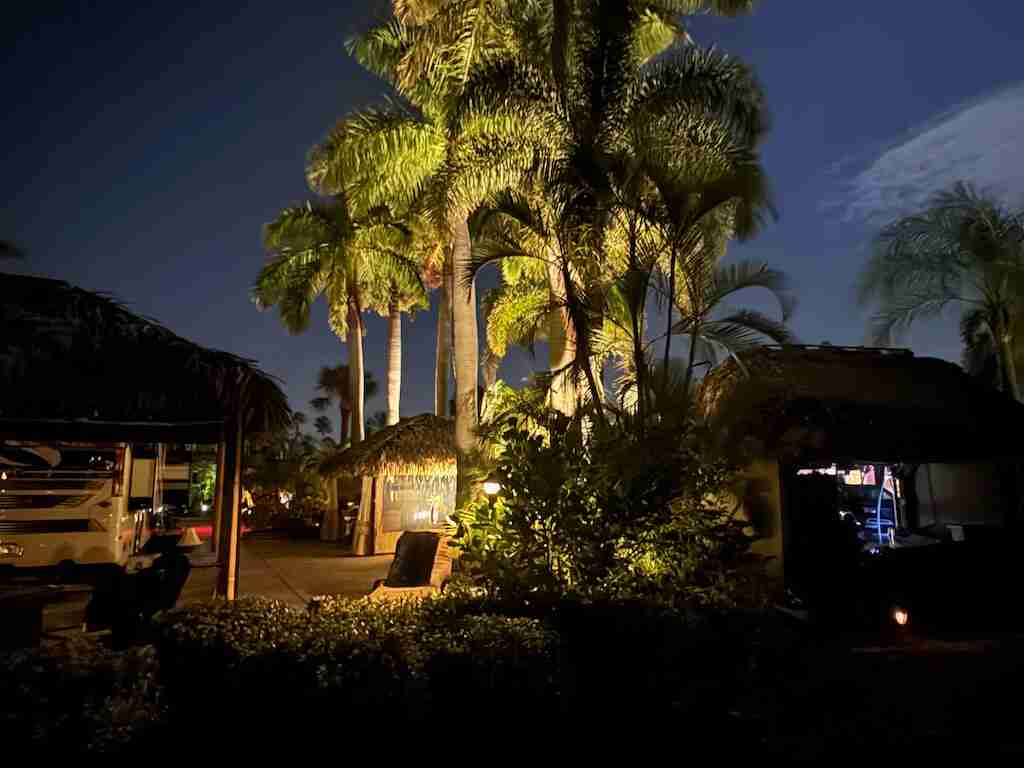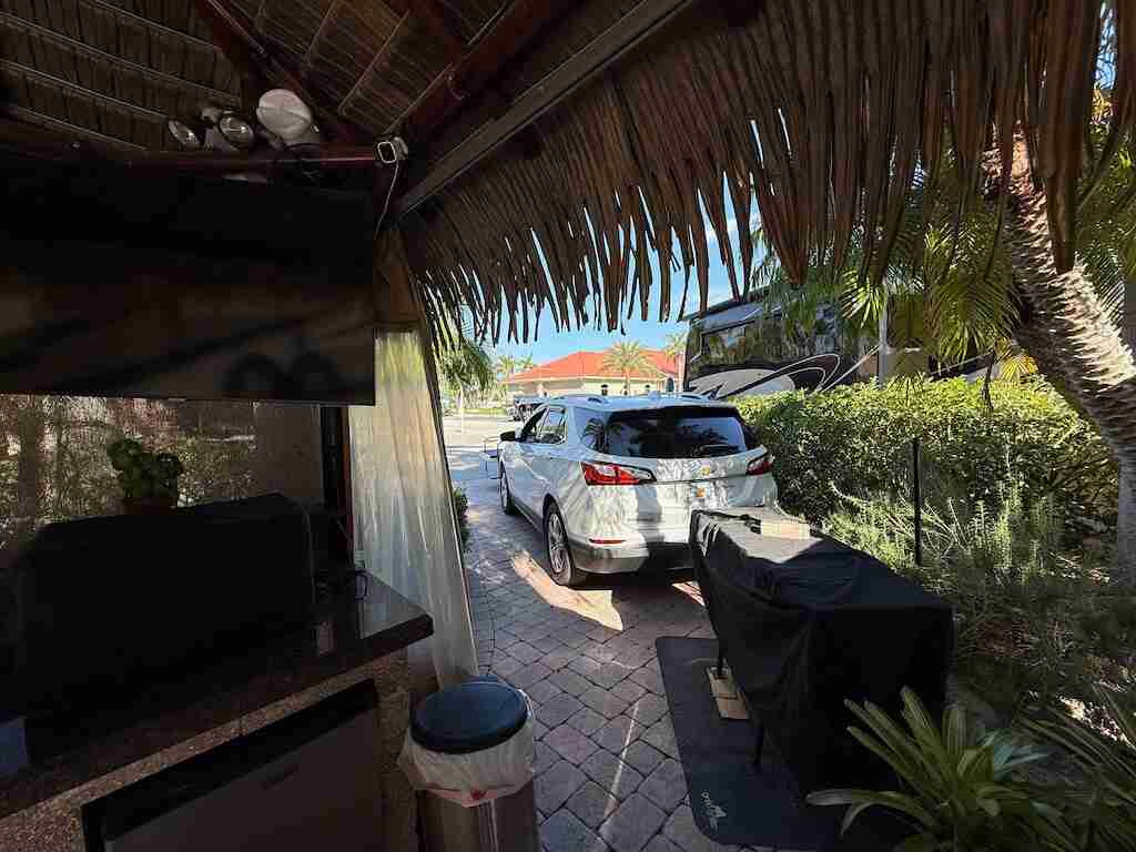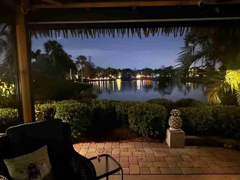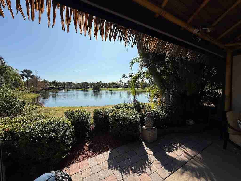 STUNNING LAKE VIEW! Get ready to fall in love with this spectacular north-facing lot, perfectly located just a short walk from the clubhouse and main pool. Offering one of the best views of the lake and its lighted fountains, this 3,521 sq. ft. property is a rare gem. With 70 feet of frontage, there’s plenty of space for both golf cart and car parking. The landscaping is simply breathtaking—mature plants in raised paver beds provide both beauty and privacy, while majestic up-lit Royal Palms and extensive landscape lighting create a magical ambiance, day or night. The large hurricane-rated, all-weather tiki features a granite-topped bar. The large hurricane-rated, all-weather tiki features a granite-topped bar, making it the ultimate spot for entertaining and a second tiki to maximize the lakefront experience. This lot is fully furnished with top-of-the-line pieces, including a dining table and chairs, a fire pit table, and lounger. Every detail has been thoughtfully considered.