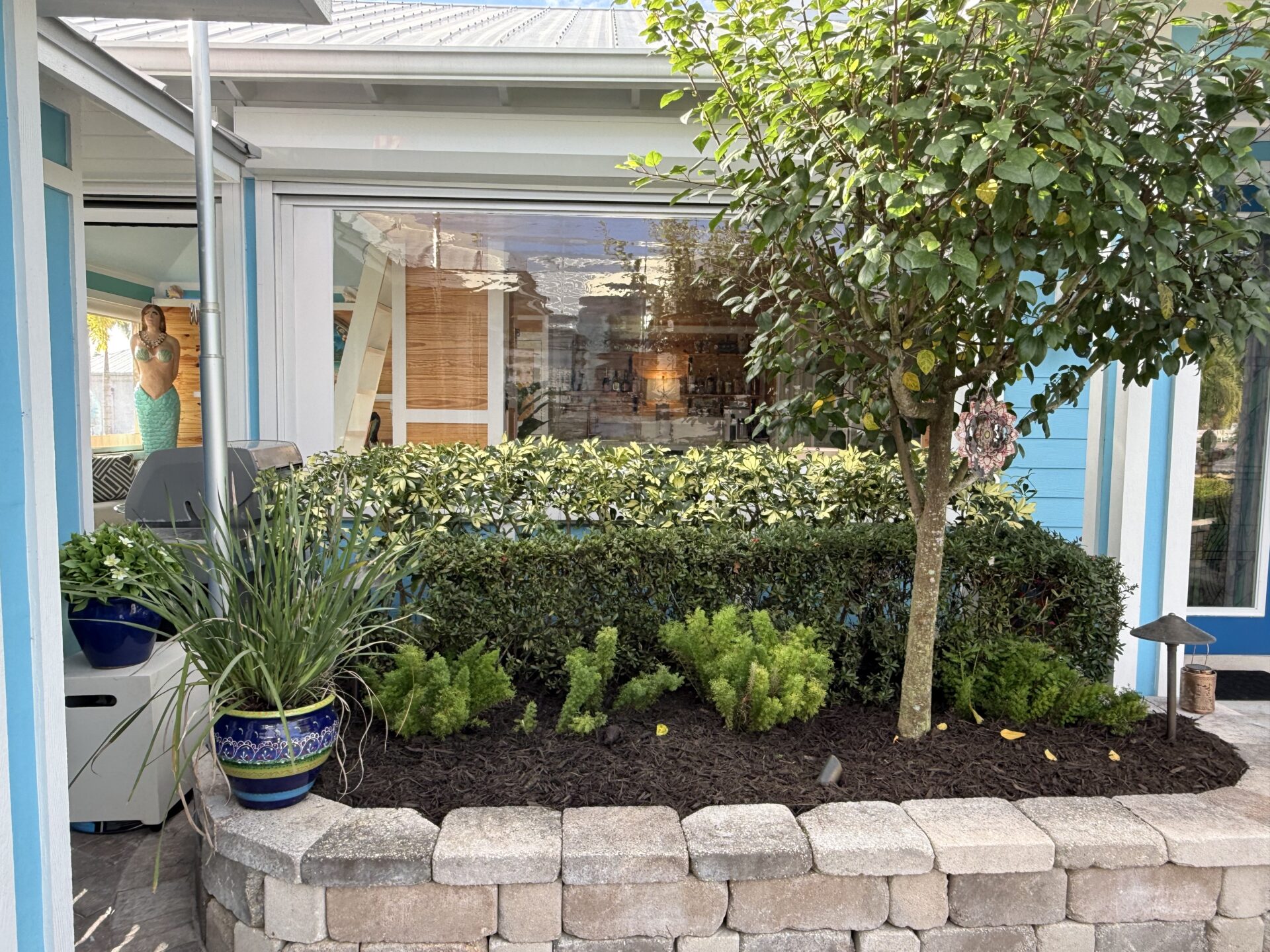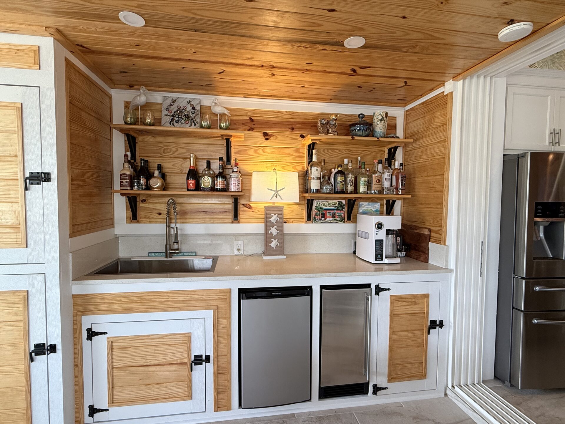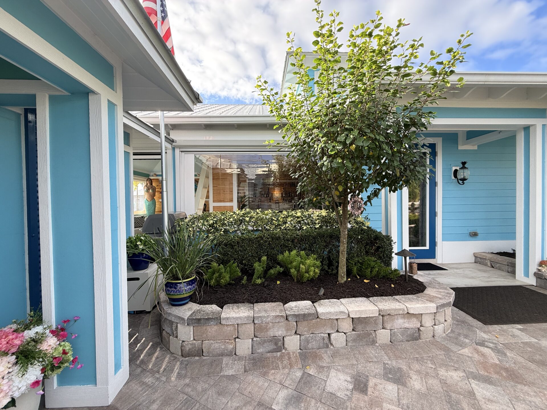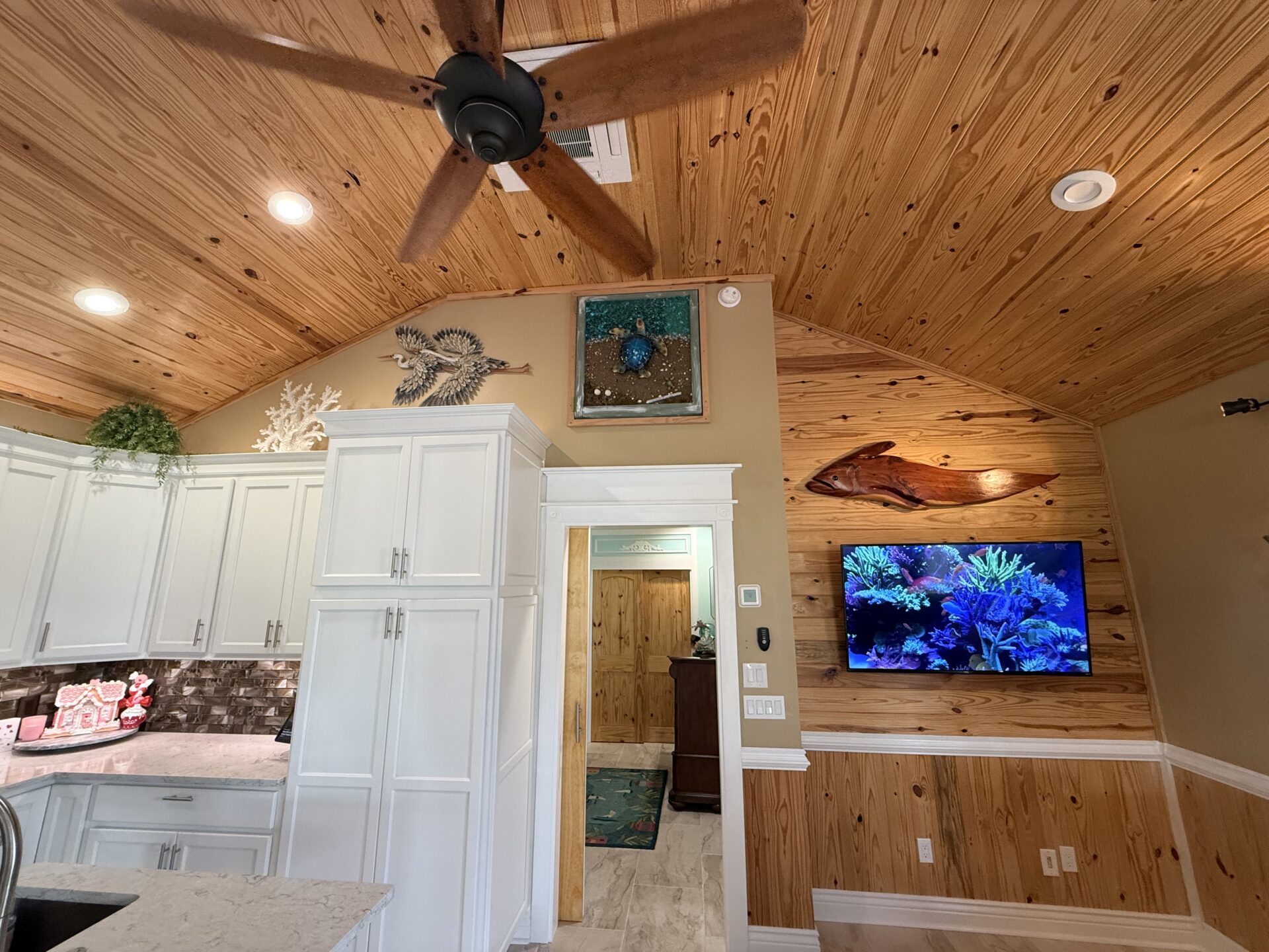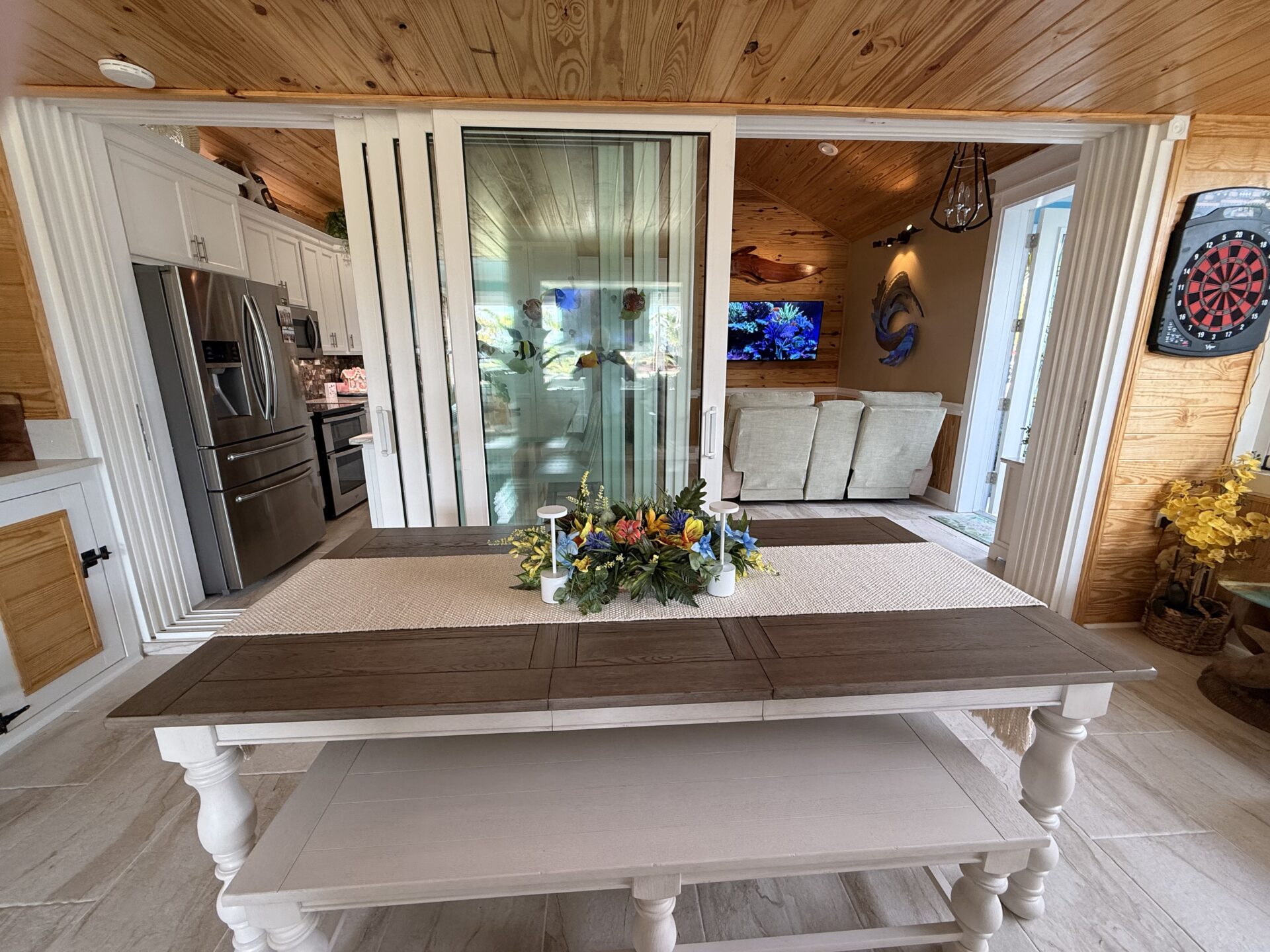 Step outside to your private pergola-covered lounge — a perfect setting to unwind, watch TV, or entertain while enjoying peaceful golf course and waterfall views. Every detail of the décor is colorful, curated, and full of personality, delivering a home that feels both upscale and effortlessly inviting.
