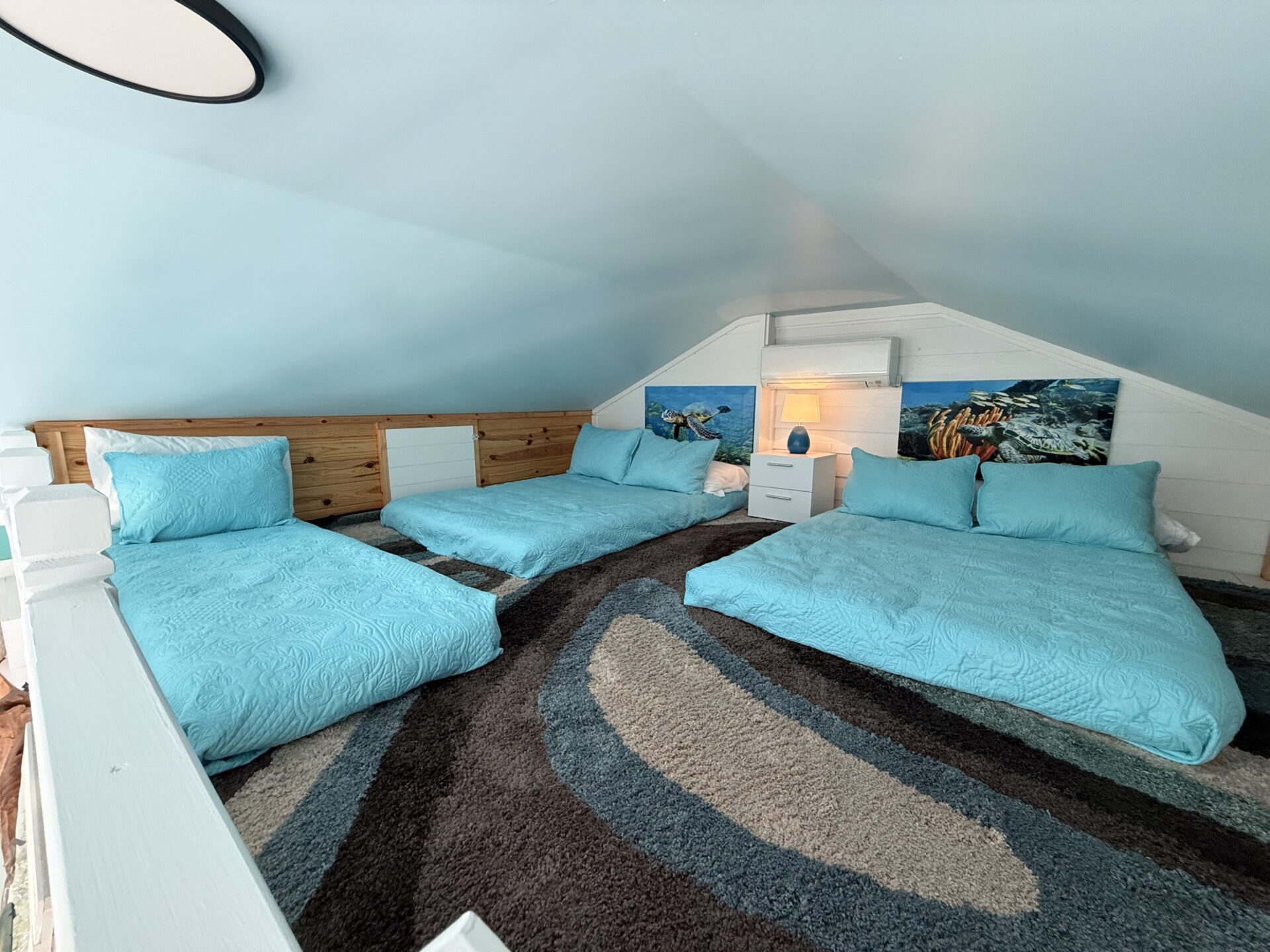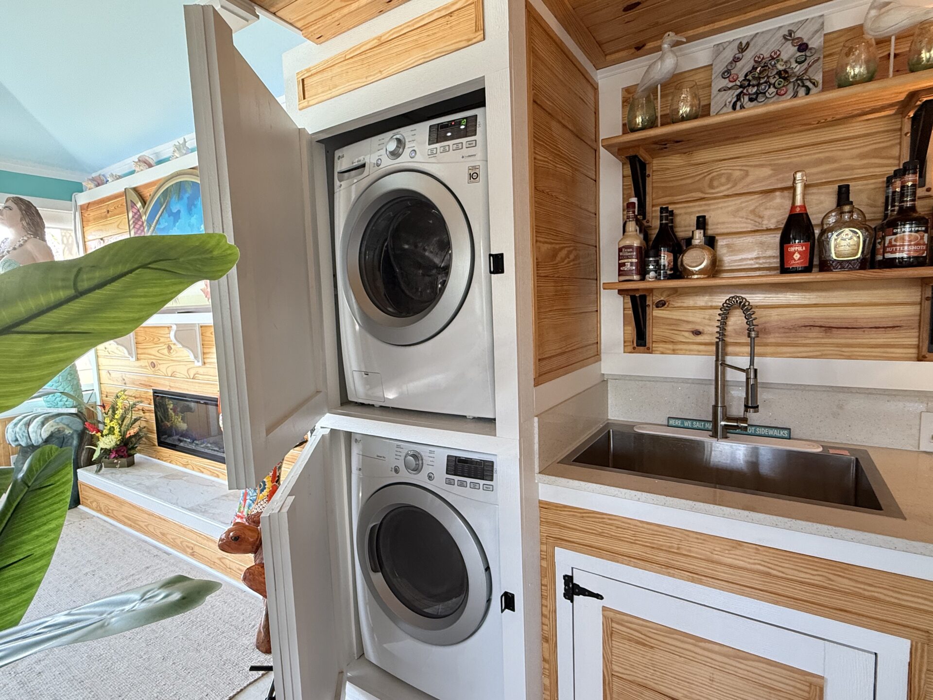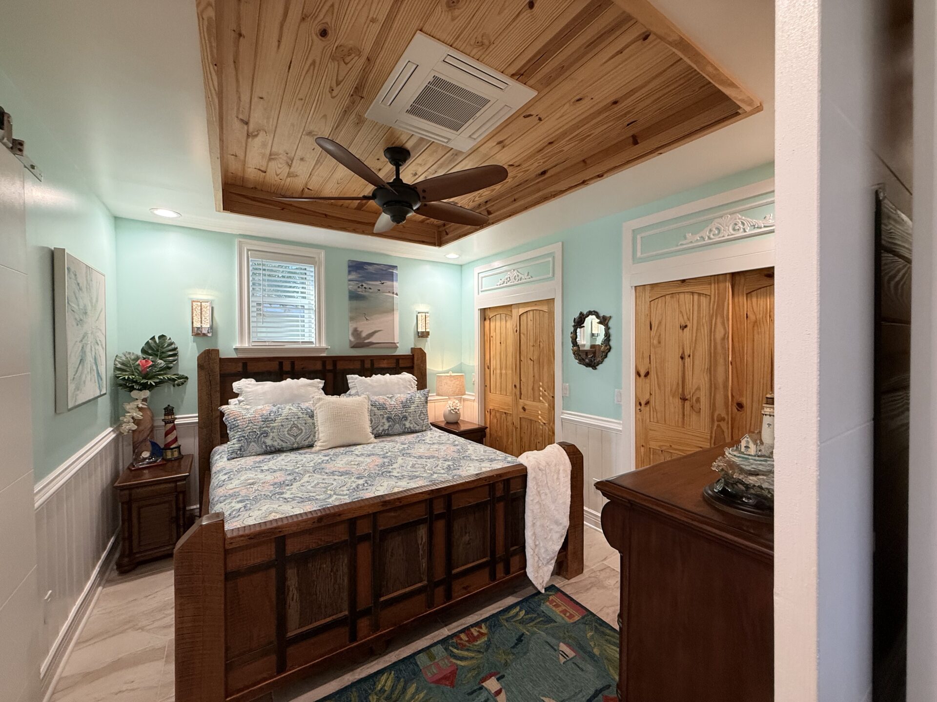 Warm, natural wood finishes and custom built-ins create a welcoming yet upscale atmosphere throughout. The thoughtfully designed loft provides additional sleeping space, allowing accommodations for up to six guests with ease — ideal for hosting family and friends in style.