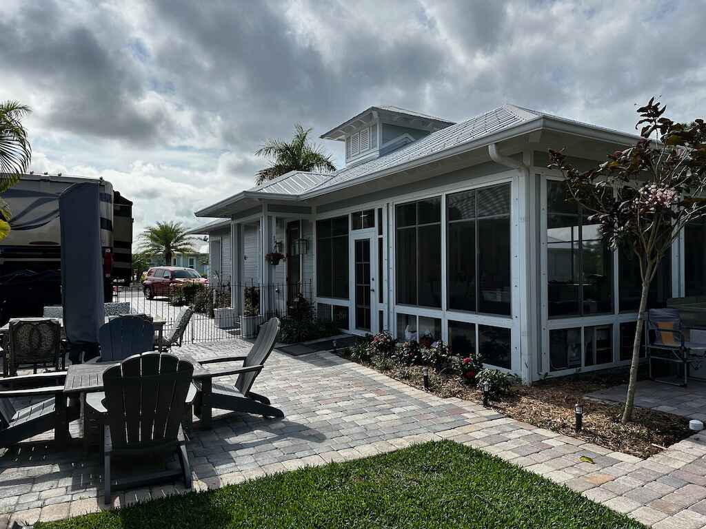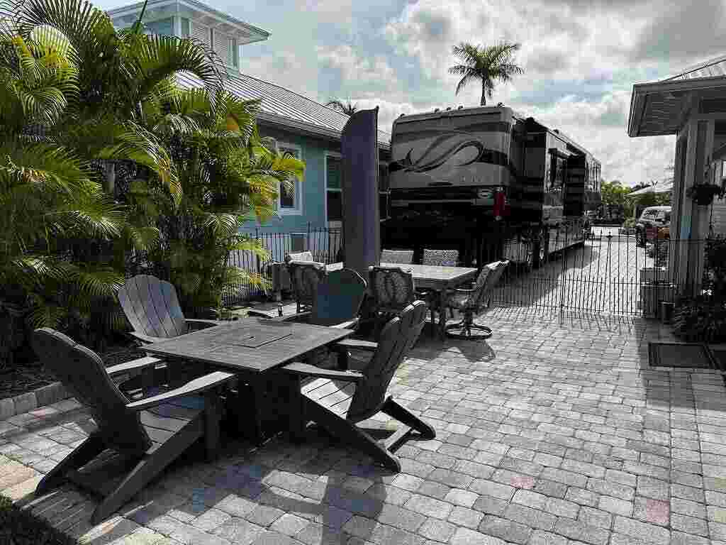 CHEF’S DELIGHT!! This coach house is absolutely stunning! Tastefully appointed both inside and out with the ultimate in luxury living in mind. Situated on a large, 5401 sq ft corner lot, the lush landscaping and large fenced in yard provide the ultimate in privacy while still enjoying the outdoor RV lifestyle. This coach house also features a unique enclosed/screened large porch with built in bar area, doubling the living area and making packing up for the season a breeze! The interior living space is an absolute must see. The chef’s kitchen, equipped with the finest Luxury AGA appliances in Claret, is a real show stopper! Plenty of outside dog friendly, fenced in entertaining space, and there’s even a stainless steel potting table/center for gardening enthusiasts. Additional 100 square foot laundry room/storage room. Furnished and move in ready. All that is needed is your motorhome! Priced to sell!!