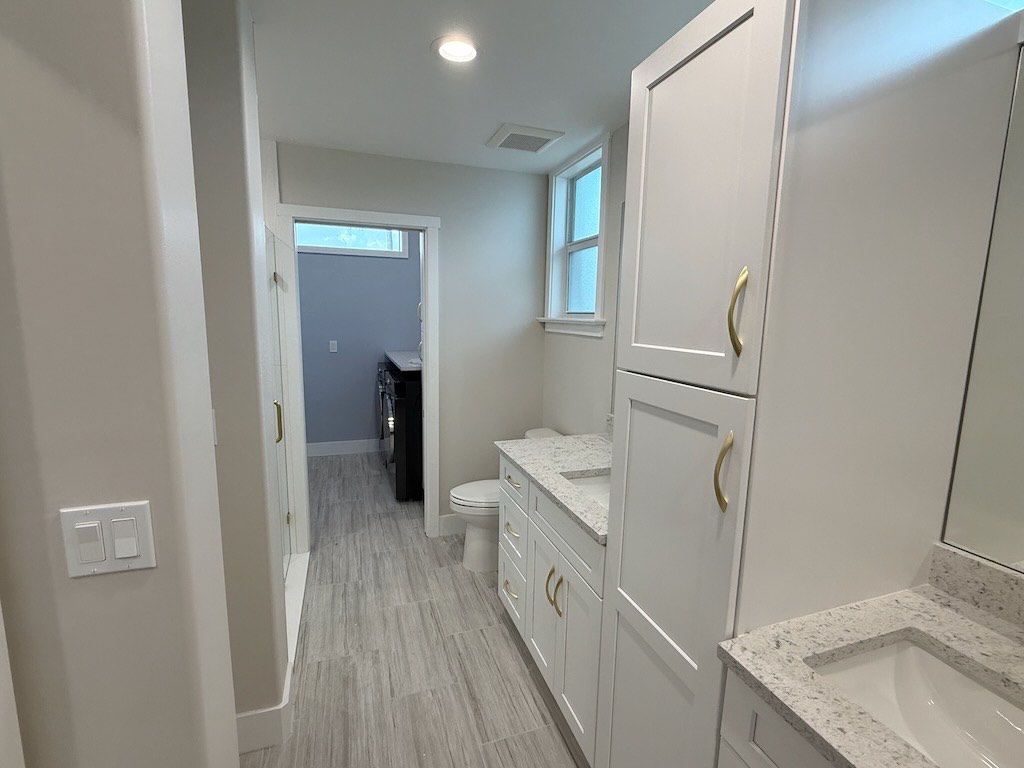 Stylish touches are found throughout, including modern barn doors and carefully selected finishes that elevate the home’s character. Outside, you’ll enjoy generous entertaining areas surrounded by professionally designed landscaping, enhanced with uplighting that highlights the mature trees and creates a warm, welcoming ambiance at night.