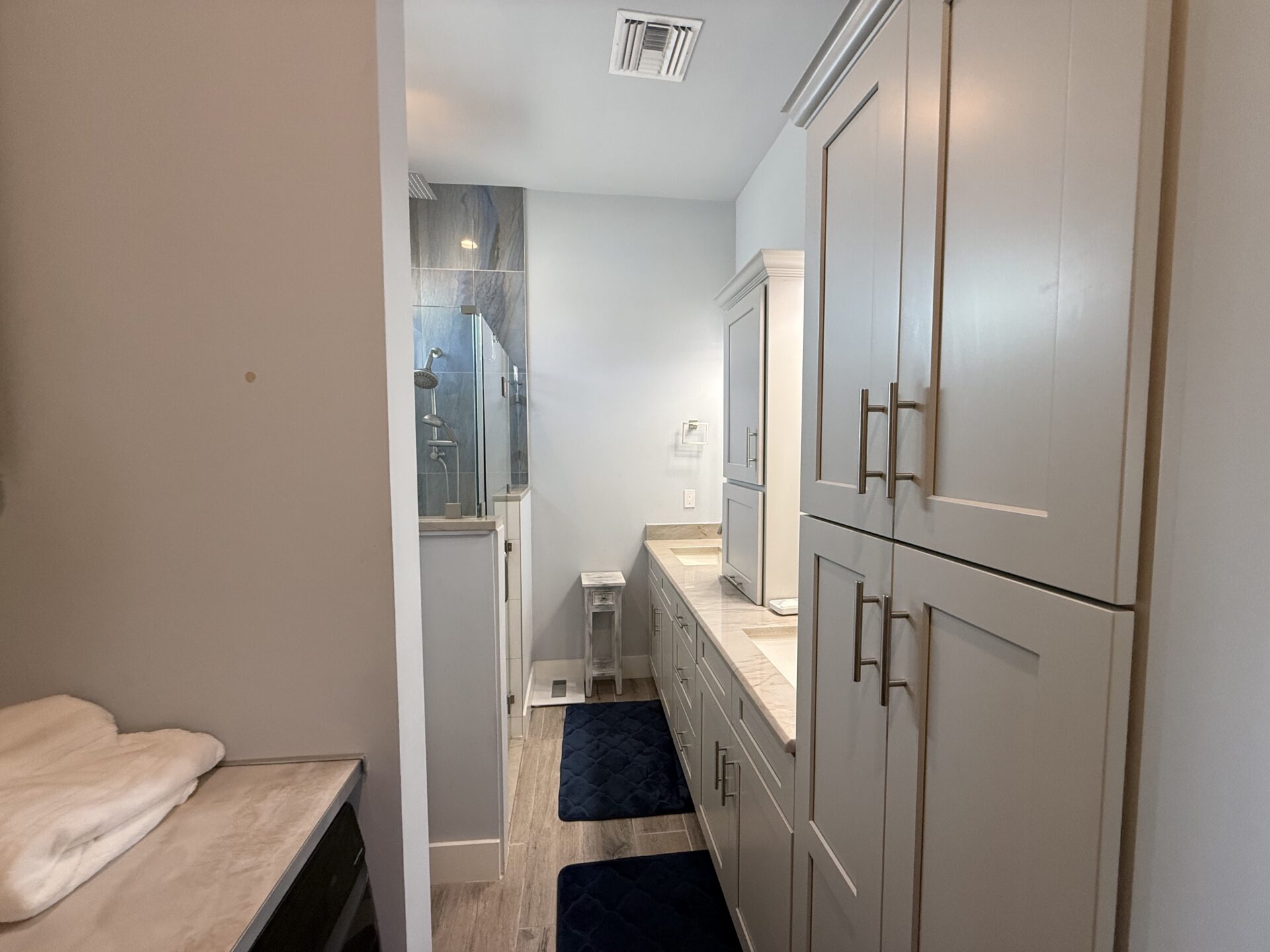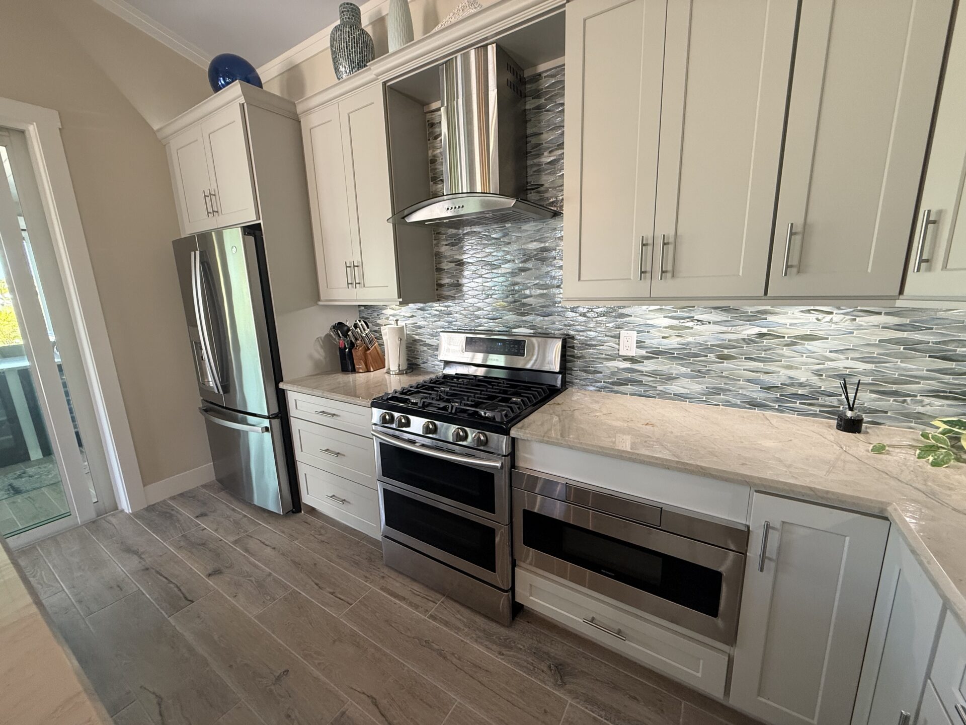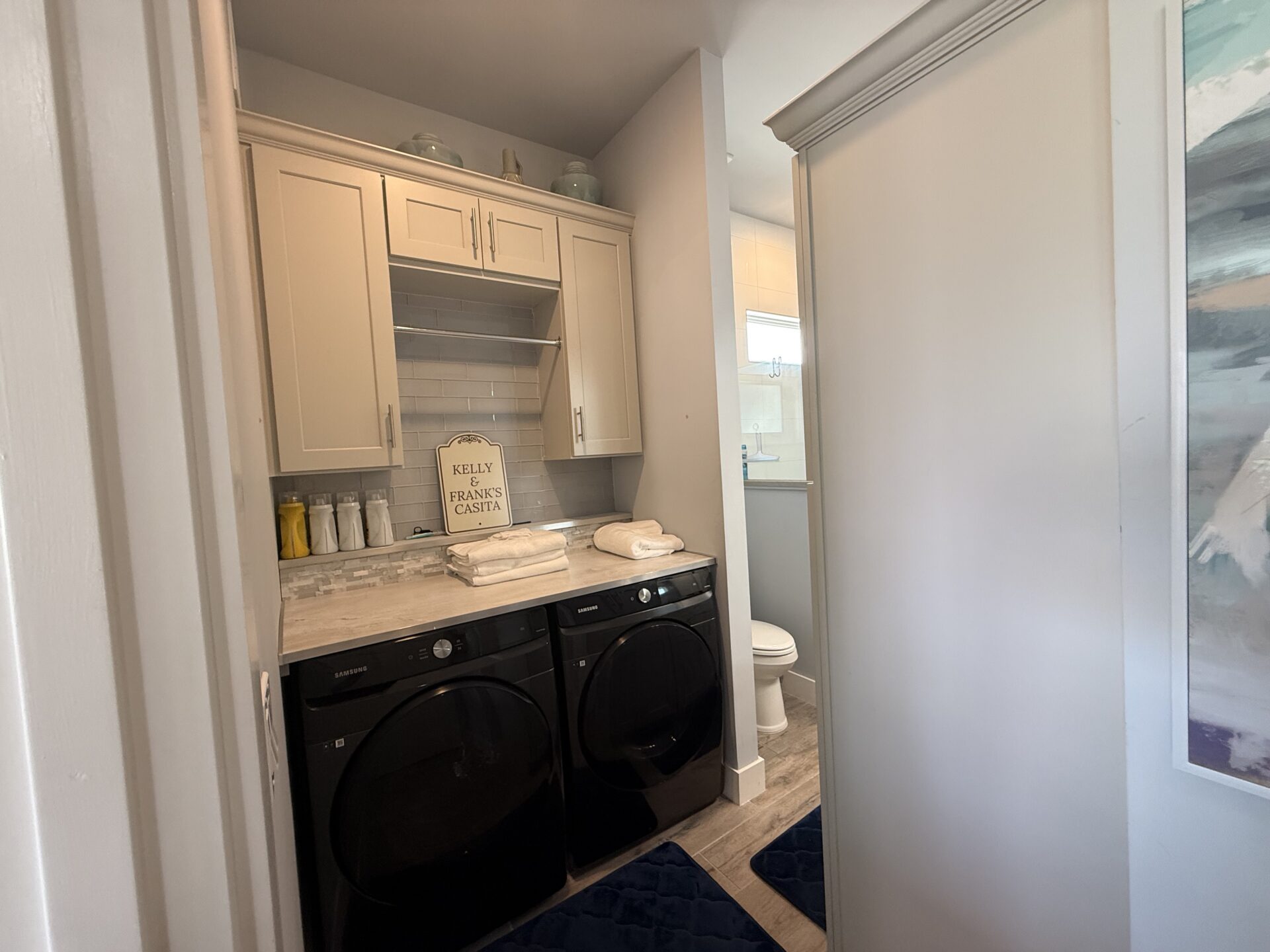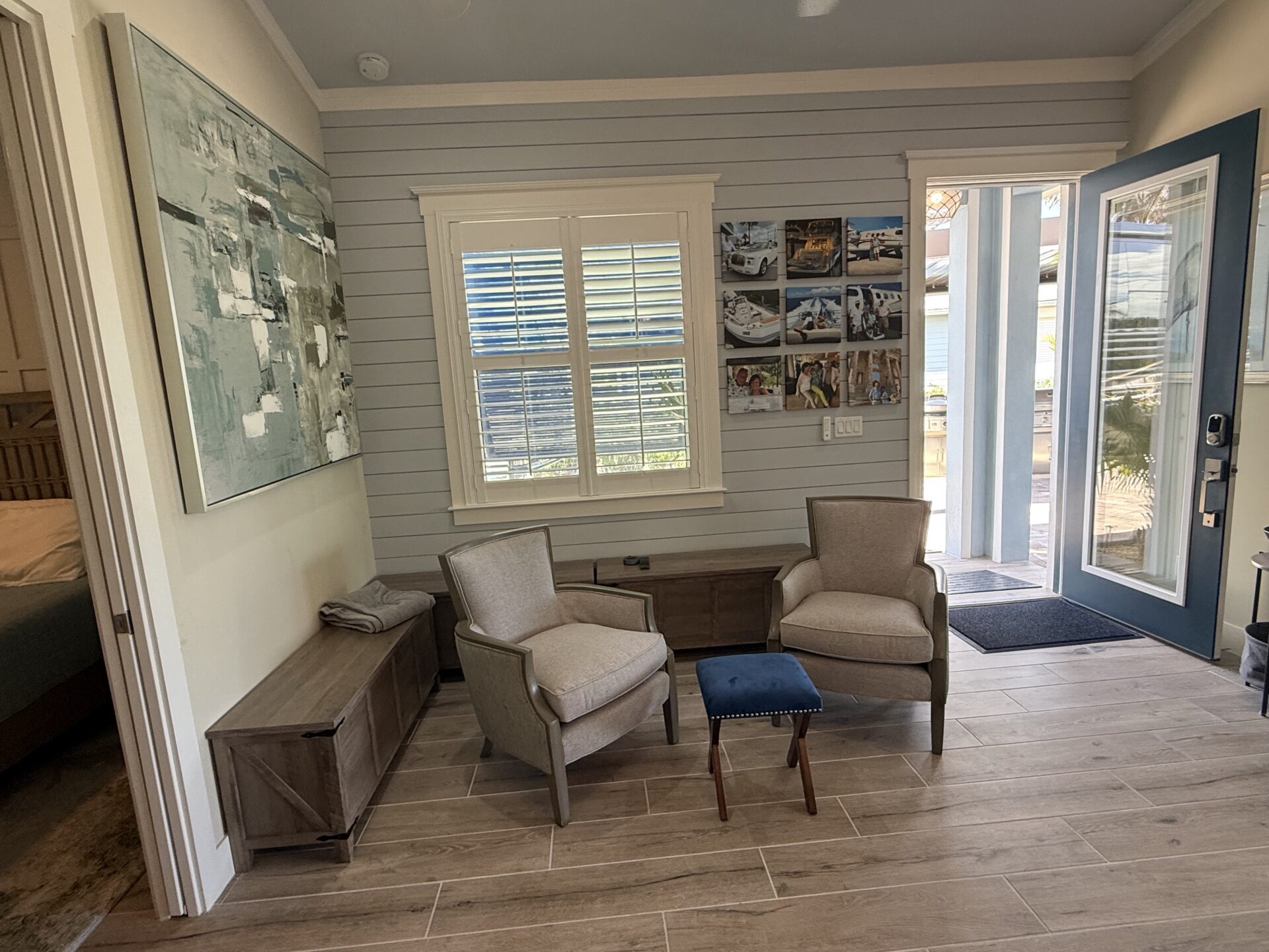 Inside, the home reflects professional design and thoughtful craftsmanship, with sophisticated furnishings, premium appliances, and carefully curated finishes that create a warm yet luxurious retreat. The fully equipped kitchen offers generous custom cabinetry and storage, complemented by additional built-in storage solutions both indoors and within the lanai—ensuring everything has its place while maintaining the home’s clean, elegant aesthetic.