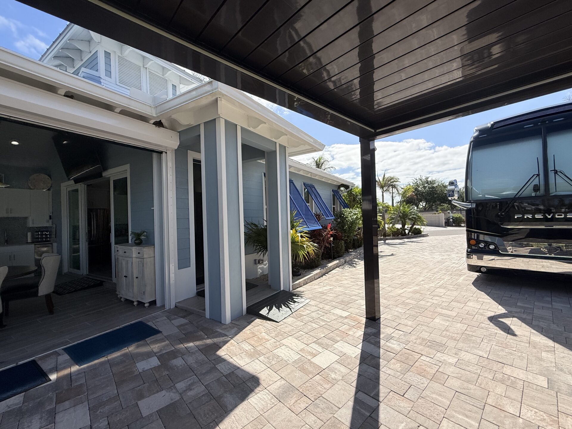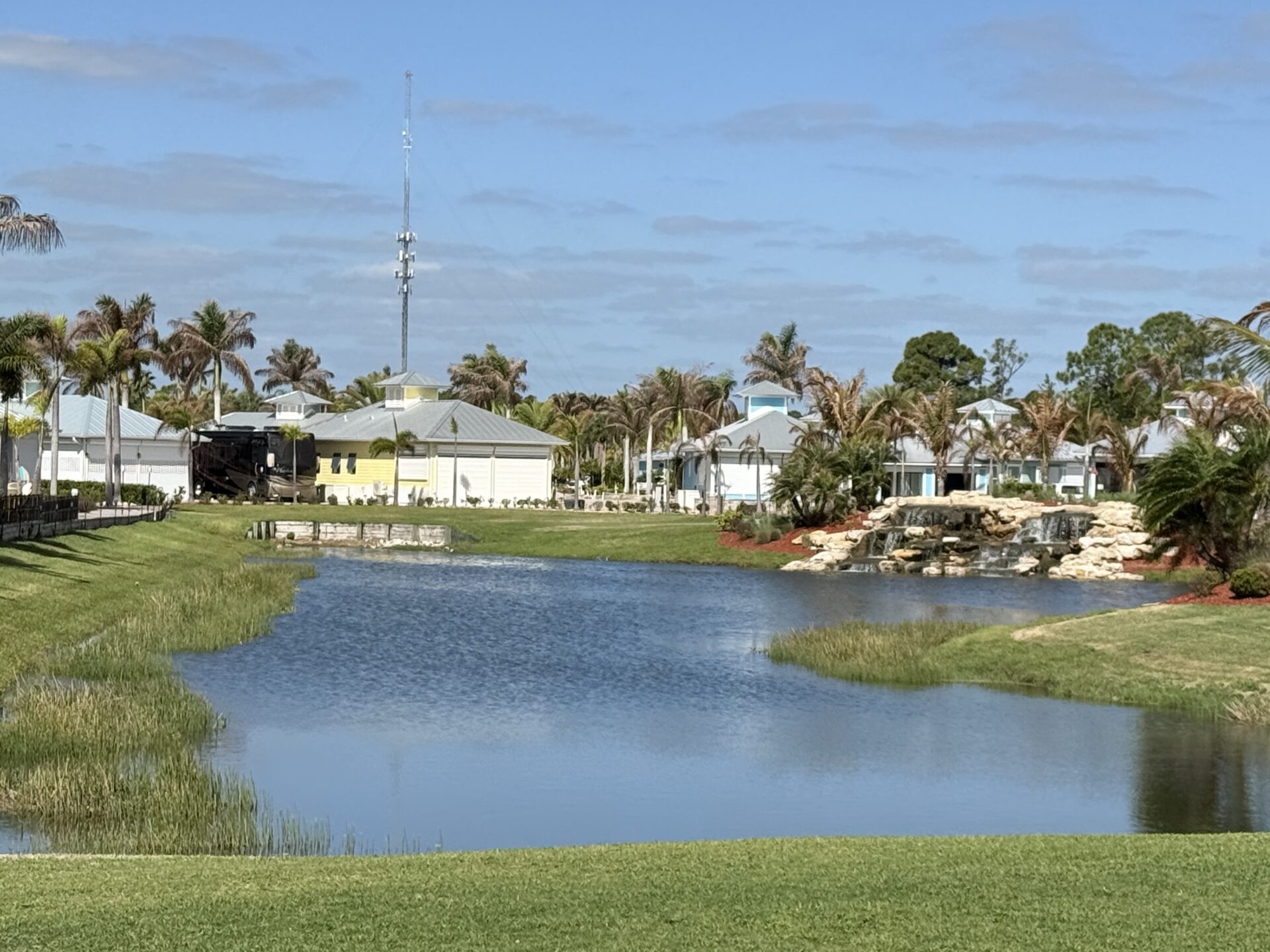 Welcome to your own private oasis overlooking the 6th hole and the resort’s shimmering lake and cascading waterfall in the newest section of Motorcoach Resort St. Lucie West. Perfectly positioned on a spacious corner lot, this exceptional coach house offers an elegant blend of refined living and effortless entertaining.