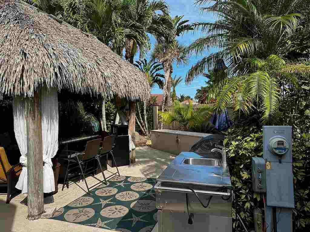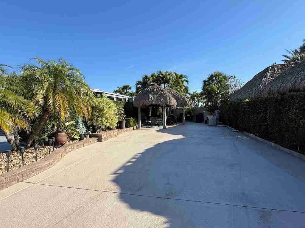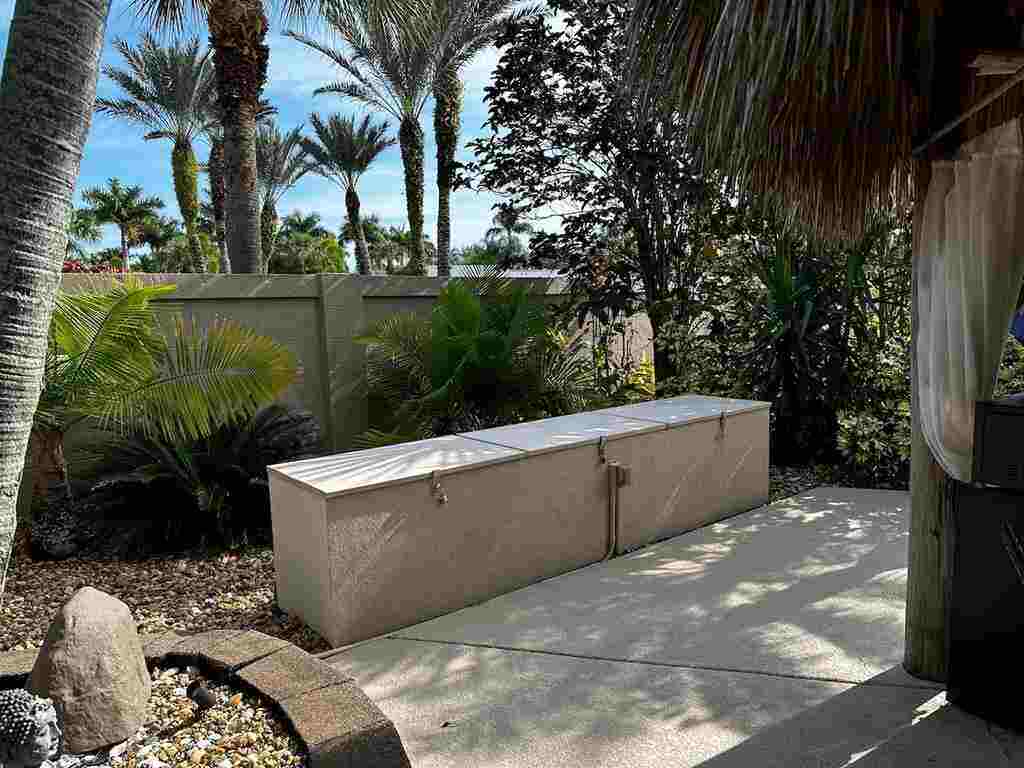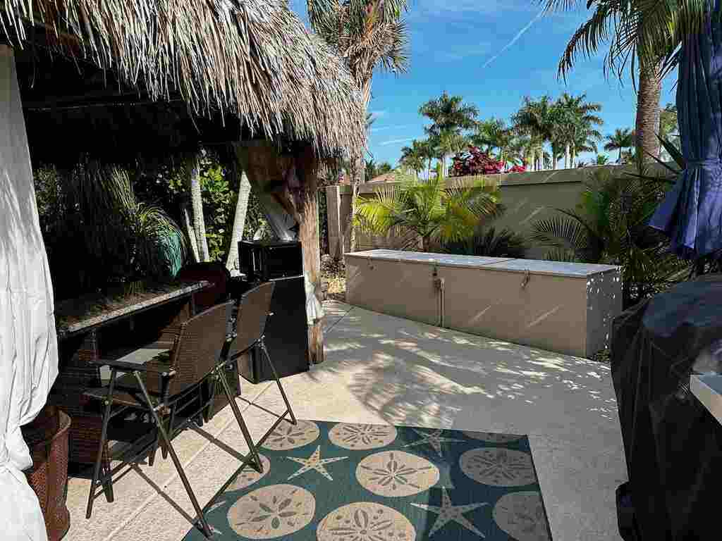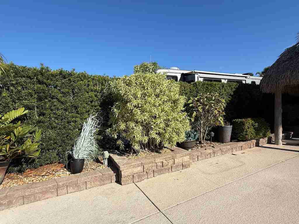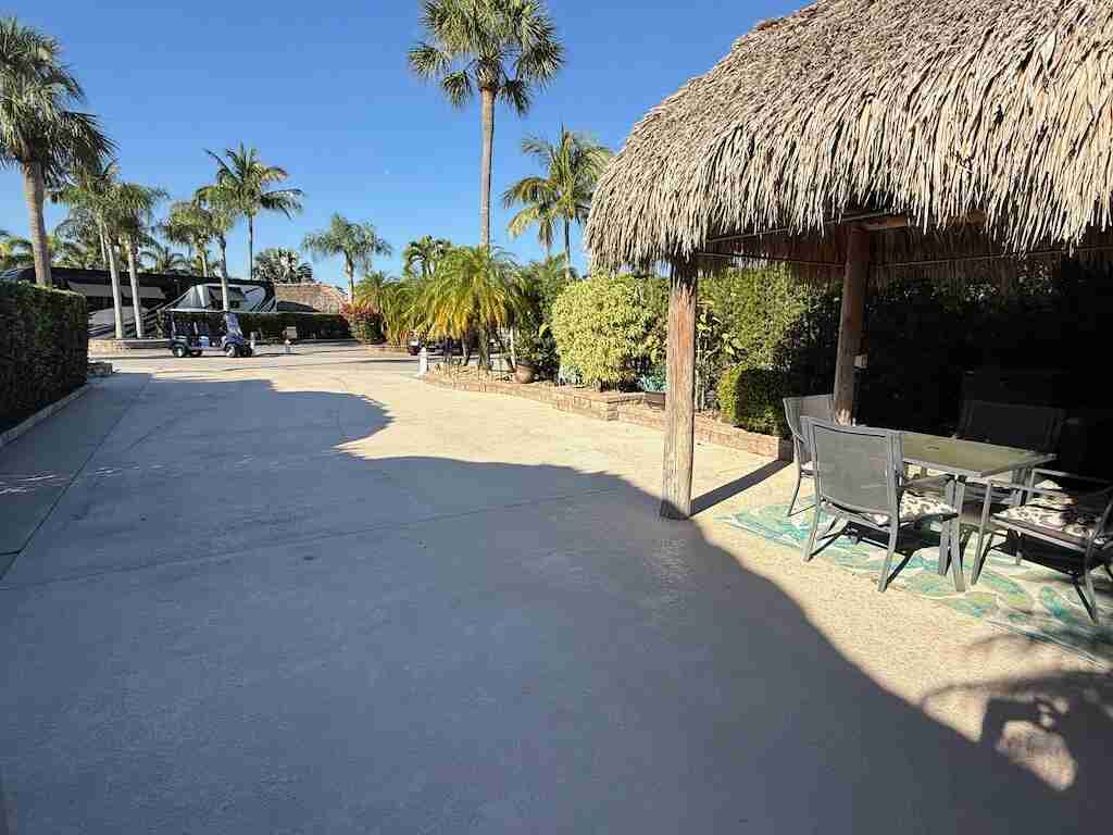 Ideally located between the clubhouse and the south satellite pool, this oversized 2,753-square-foot lot offers the perfect combination of convenience, privacy, and lush natural beauty. Backing onto a serene preserve, it provides a peaceful escape that feels like your own private retreat. The property boasts a spacious tiki hut, perfect for entertaining, as well as a bonus bar/tiki, creating an additional space for gatherings, cocktails, or quiet relaxation. Thoughtfully designed landscaping enhances privacy while maintaining a tropical ambiance. With ample parking for two vehicles and a golf cart, convenience is never an issue. From the moment you step into the tiki, you’ll feel right at home. Whether you’re hosting friends, unwinding in the shade, or simply soaking in the tranquil surroundings, this lot offers an unparalleled resort lifestyle. Don’t miss out—come experience this hidden gem for yourself!