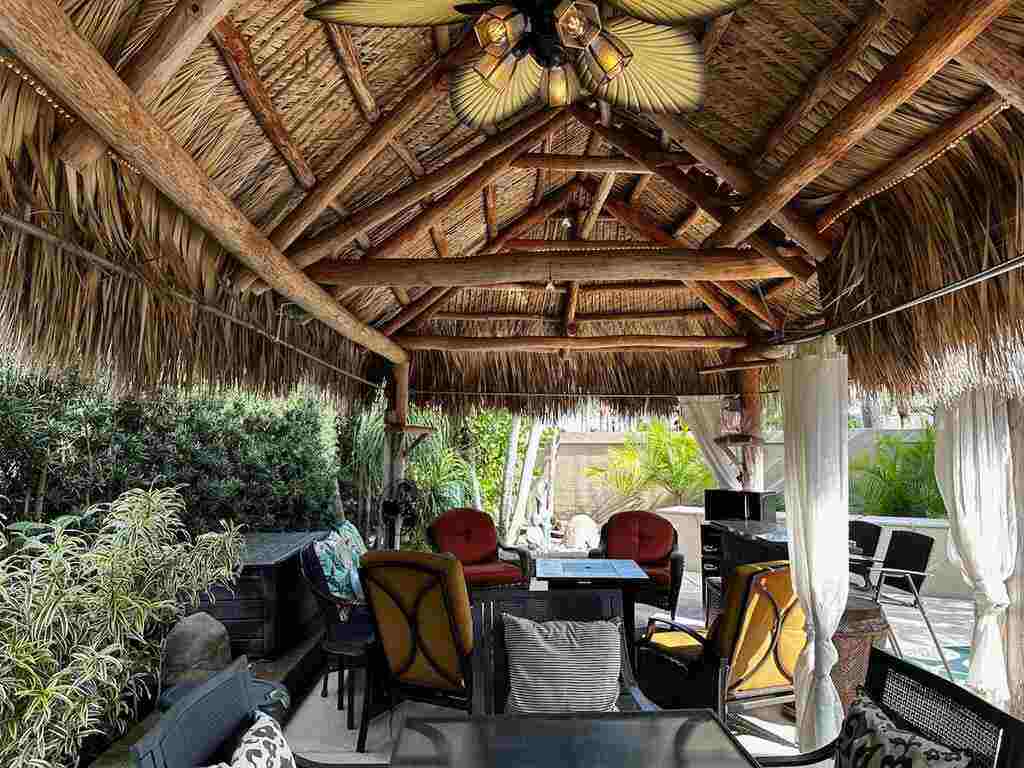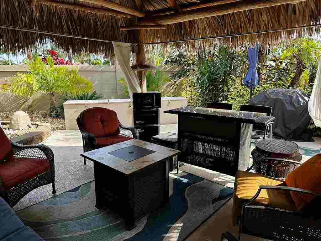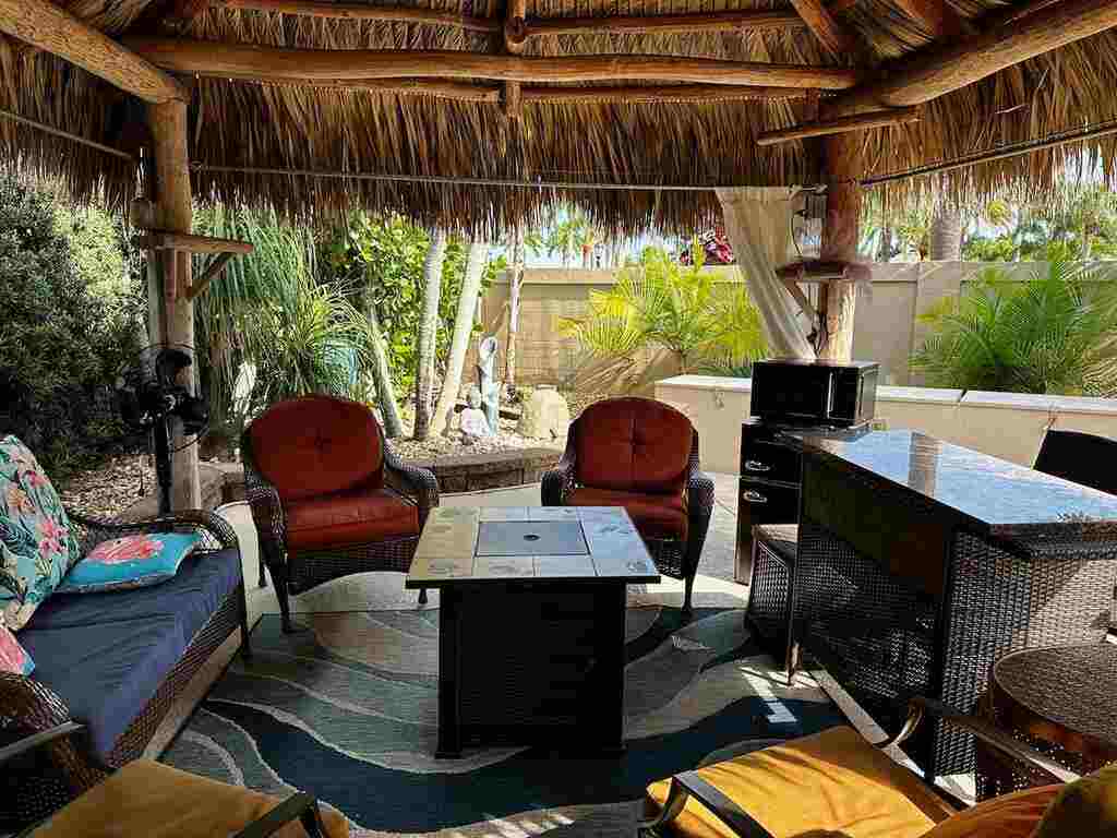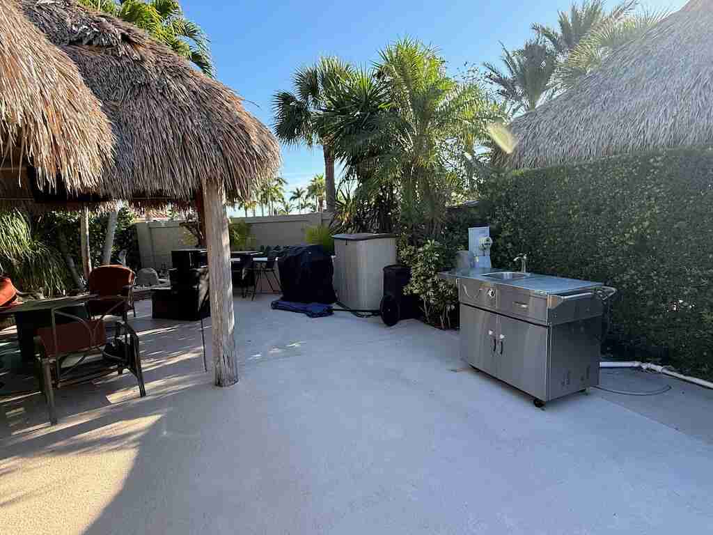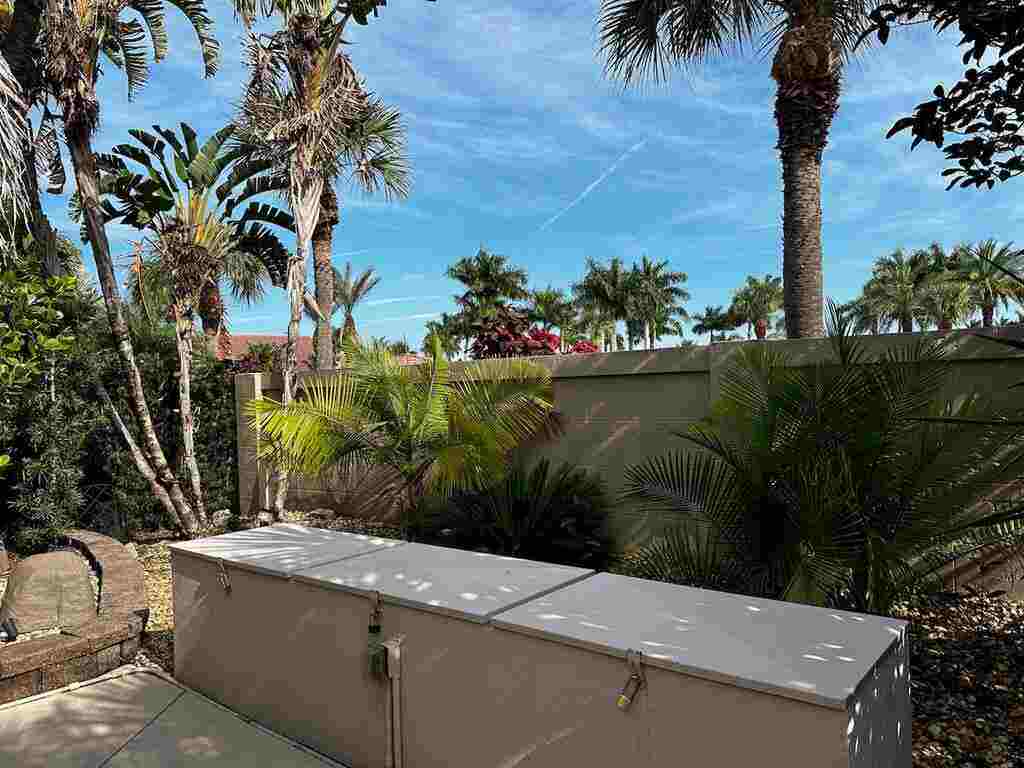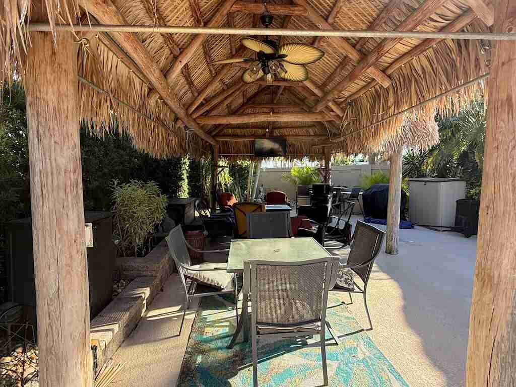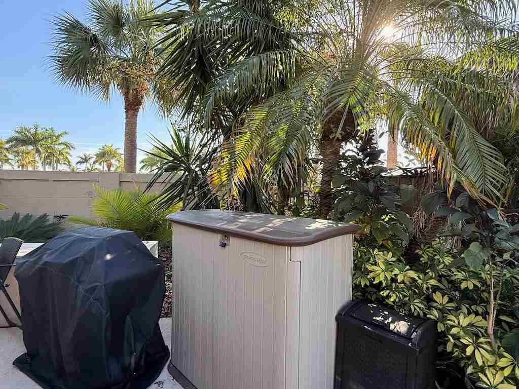 Ideally located between the clubhouse and the south satellite pool, this oversized 2,753-square-foot lot offers the perfect combination of convenience, privacy, and lush natural beauty. Backing onto a serene preserve, it provides a peaceful escape that feels like your own private retreat. The property boasts a spacious tiki hut, perfect for entertaining, as well as a bonus bar/tiki, creating an additional space for gatherings, cocktails, or quiet relaxation. Thoughtfully designed landscaping enhances privacy while maintaining a tropical ambiance. With ample parking for two vehicles and a golf cart, convenience is never an issue. From the moment you step into the tiki, you’ll feel right at home. Whether you’re hosting friends, unwinding in the shade, or simply soaking in the tranquil surroundings, this lot offers an unparalleled resort lifestyle. Don’t miss out—come experience this hidden gem for yourself!