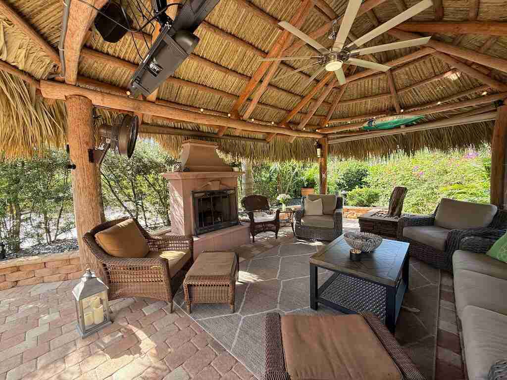 YOUR TROPICAL OASIS AWAITS! Ideally situated near the north satellite pool, this oversized 2,753-square-foot lot offers the perfect blend of convenience, privacy, and natural beauty. Backing onto a lush preserve, it provides a serene tropical escape that feels like your very own retreat. The property features a large tiki hut, ideal for hosting and entertaining guests, along with a bonus bar/tiki, adding a second dedicated space for gatherings and relaxation. There’s Ample parking for two vehicles and a golf cart and the beautiful landscaping is designed for privacy and tranquility. From the moment you step into the tiki, you’ll feel like you’ve found your home away from home. Whether entertaining or simply enjoying the peaceful surroundings, this lot is sure to impress. Come experience the serenity and beauty for yourself—this property is a must-see!