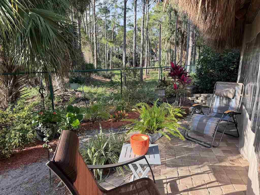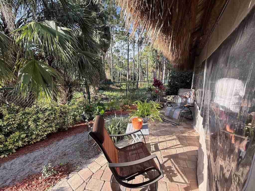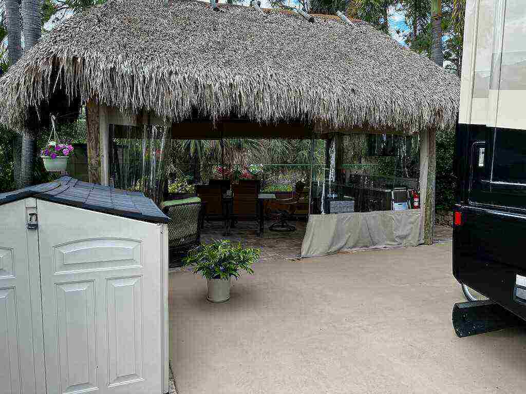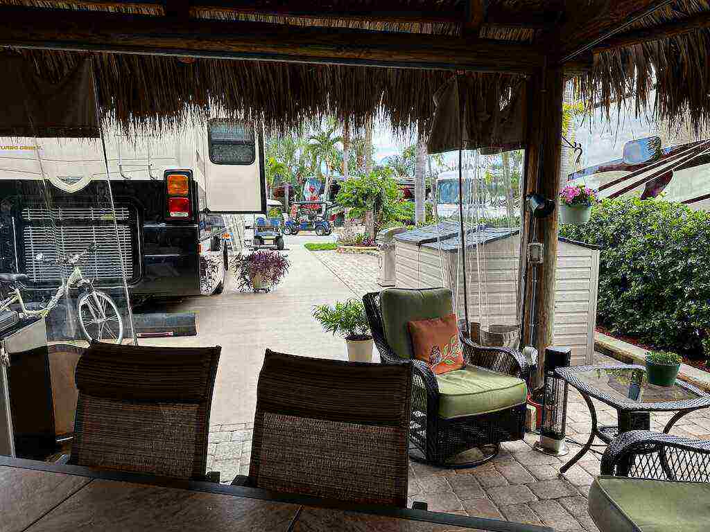 Discover unparalleled tranquility on this generously sized, extra-deep lot offering exceptional privacy. Nestled against the serene backdrop of the preserve, this oasis beckons those with a passion for gardening, with ample space along the fence to cultivate your own botanical haven. Conveniently situated near the north satellite pool/spa, bathhouse, and laundry facilities, this expansive lot is adorned with lush, mature plantings and meticulously landscaped raised beds, creating a verdant sanctuary. Unwind in style at the spacious tiki, complete with eisenglass curtains for chilly evenings and a custom granite-topped kitchen. Fully furnished with a table and chairs, comfortable seating, a television, and ample storage. Whether you’re indulging in al fresco dining or simply basking in the tranquility of nature, this retreat promises a truly immersive experience for nature enthusiasts. Embrace the serenity of this nature lover’s paradise. NEW tiki re-thatch November 2024!