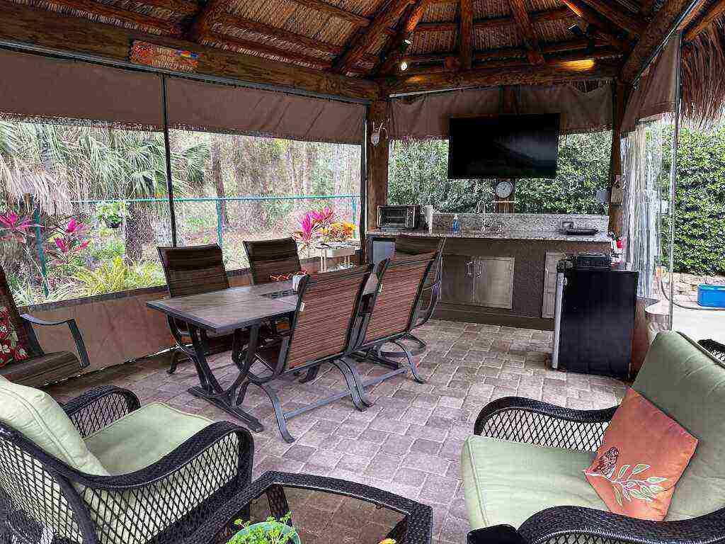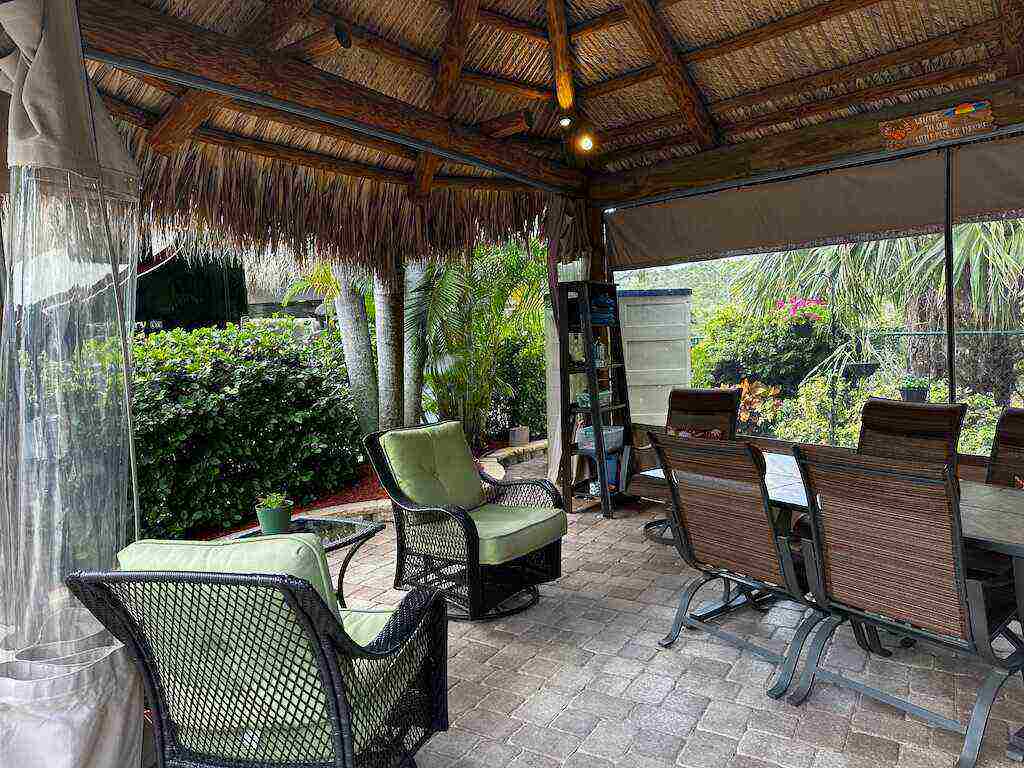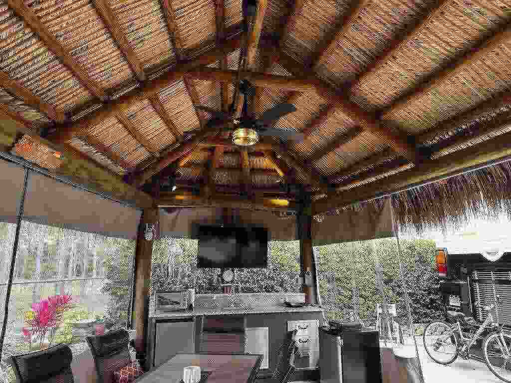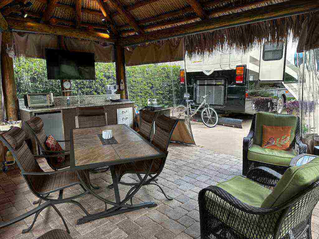 Discover unparalleled tranquility on this generously sized, extra-deep lot offering exceptional privacy. Nestled against the serene backdrop of the preserve, this oasis beckons those with a passion for gardening, with ample space along the fence to cultivate your own botanical haven. Conveniently situated near the north satellite pool/spa, bathhouse, and laundry facilities, this expansive lot is adorned with lush, mature plantings and meticulously landscaped raised beds, creating a verdant sanctuary. Unwind in style at the spacious tiki, complete with eisenglass curtains for chilly evenings and a custom granite-topped kitchen. Fully furnished with a table and chairs, comfortable seating, a television, and ample storage. Whether you’re indulging in al fresco dining or simply basking in the tranquility of nature, this retreat promises a truly immersive experience for nature enthusiasts. Embrace the serenity of this nature lover’s paradise. NEW tiki re-thatch November 2024!