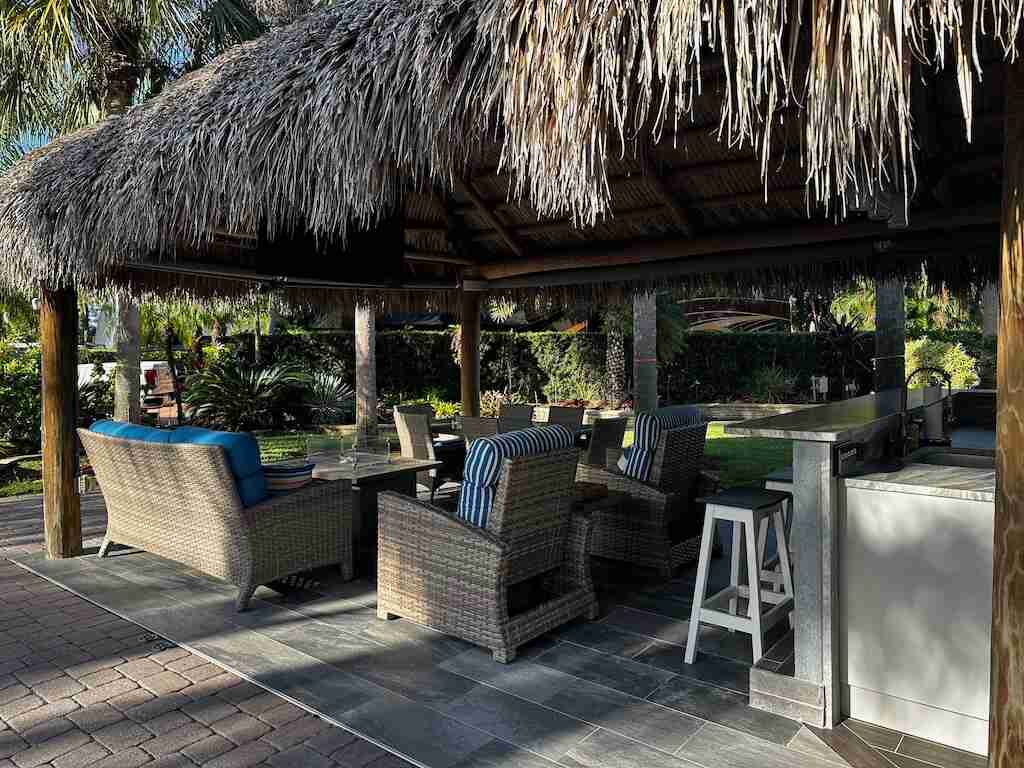 Rare Opportunity: Expansive 4,361 Sq. Ft. Lot in Exclusive Cul-De-Sac! Don’t miss the chance to own one of the largest, most secluded lots in this coveted 11-lot enclave. Nestled at the end of a cul-de-sac, this exceptional lot offers ultimate privacy with its corner location backing onto a wall and nature preserve—creating a true tropical oasis ideal for entertaining. The spacious tiki features a full-size galley kitchen with marine-grade cabinetry, a residential refrigerator, stove, and Evo stainless steel grill. Outfitted with upgraded, functional furniture and isinglass curtains for cooler nights, this setup makes entertaining a breeze. A fantastic investment, this lot comes with rental bookings already in place for the upcoming season. Secure your slice of paradise today!