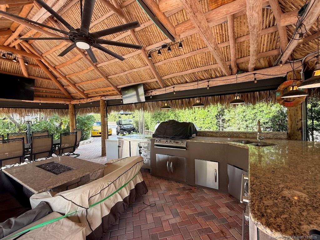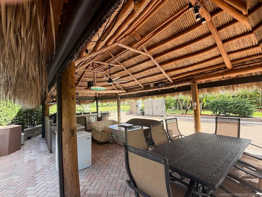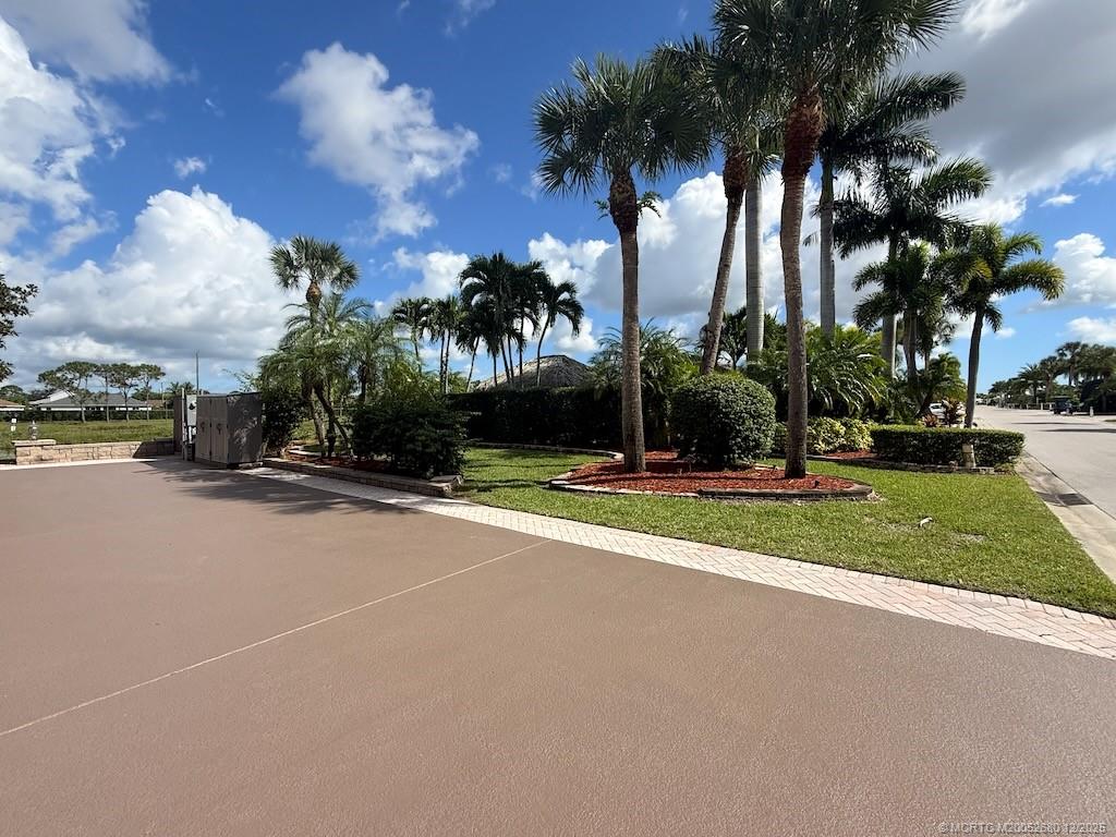 Exceptional Lot with Banyan like Tree and Lake Views – Move-In Ready! Simply stunning! This beautifully landscaped lot in Motorcoach Resort St. Lucie West features a striking banyan tree as its focal point and exceptional curb appeal. The wide frontage provides ample parking, separated by lush green space and elegant serpentine landscape beds for added privacy. A spacious natural tiki offers comfortable seating, a granite fire pit coffee table, bar stools, and TV—perfect for relaxing or entertaining. The large granite-topped outdoor kitchen includes a built-in grill, refrigerator, freezer, Traeger smoker, large Blackstone grill and plenty of counter space for hosting family and friends. Uplighting along the lakefront creates a gorgeous nighttime ambiance and highlights the natural beauty and wildlife of the area. Meticulously maintained and move-in ready—this exceptional lot is a must-see! Price includes 2021 Club Car Onward Golf Cart!